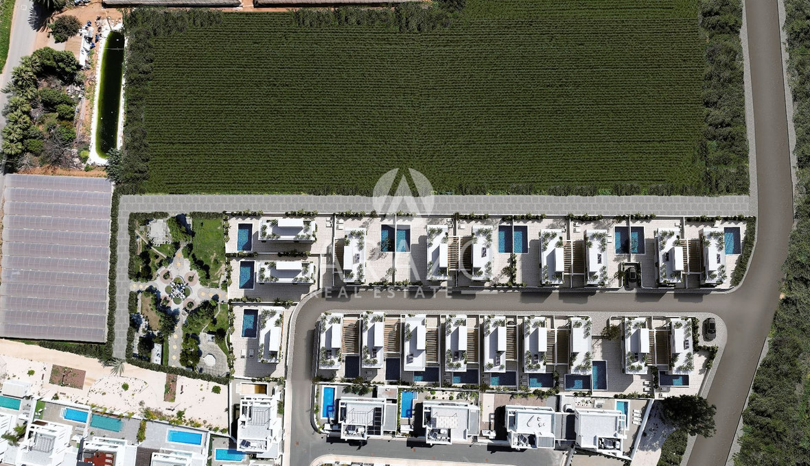Comprising nineteen luxury three-bedroom residences, each boasting a private swimming pool, roof garden, and garden space, following Villas epitomise sophistication and innovation. Crafted with meticulous attention to detail, these residences blend minimalist design with natural elements, creating an ambiance of timeless elegance. The seamless integration of indoor and outdoor spaces ensures year-round enjoyment of the terrace and garden, making these villas an ideal choice for both permanent residency and holiday escapes. With its tranquil yet centrally located setting, project offers residents a perfect balance between relaxation and convenience. Its proximity to the bustling tourist hub of Pernera, with many restaurants and services, as well as easy access to the highway, further enhances its appeal.