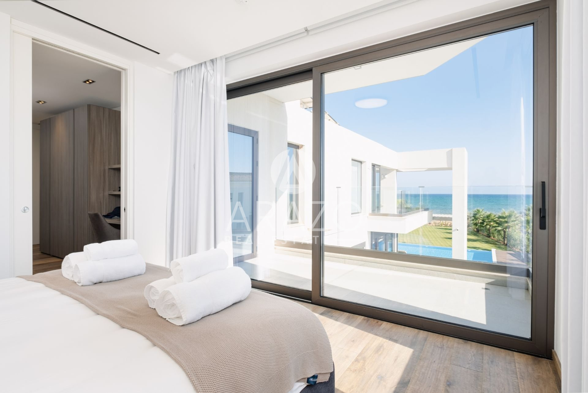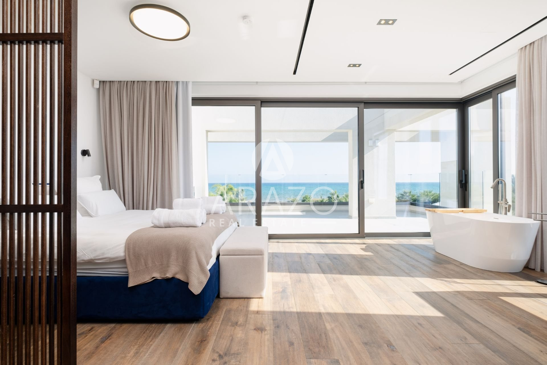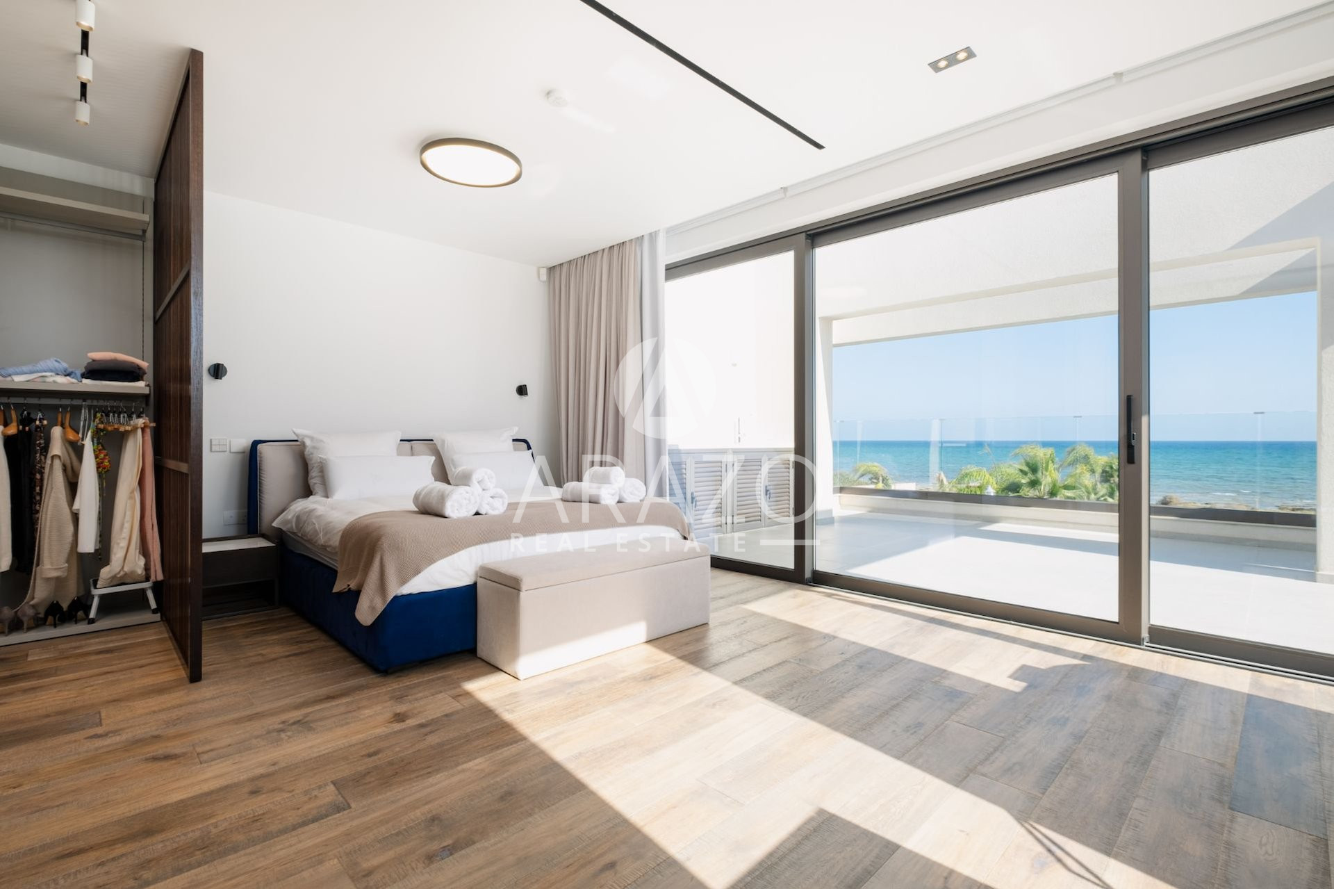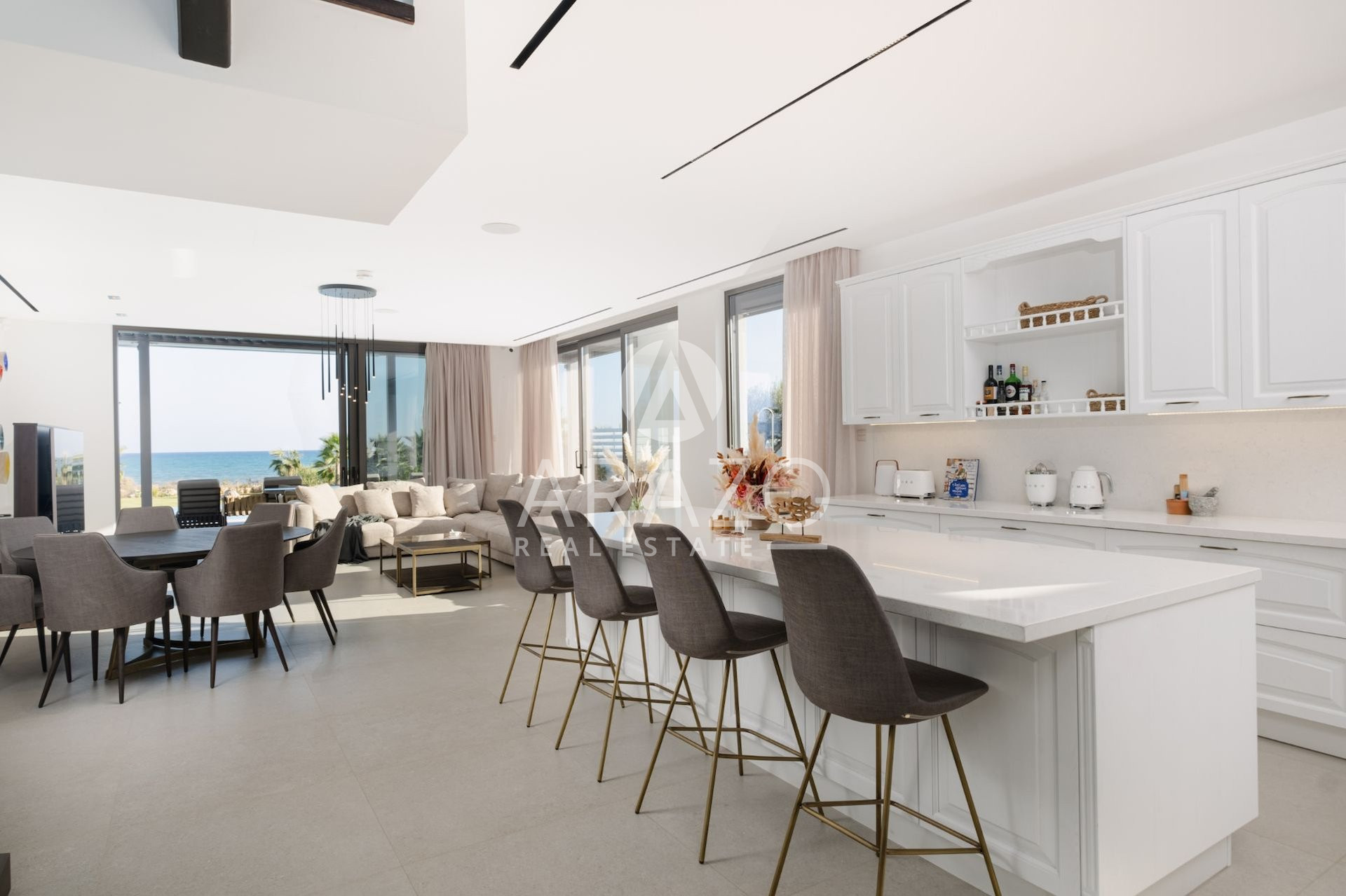 Three expansive levels, panoramic sea views, modern technologies and luxurious finishes make this villa an exquisite option for seafront living. A large green area and plot lead directly from the sea to the villa’s veranda and infinity pool, creating a beautiful view of endless horizon.