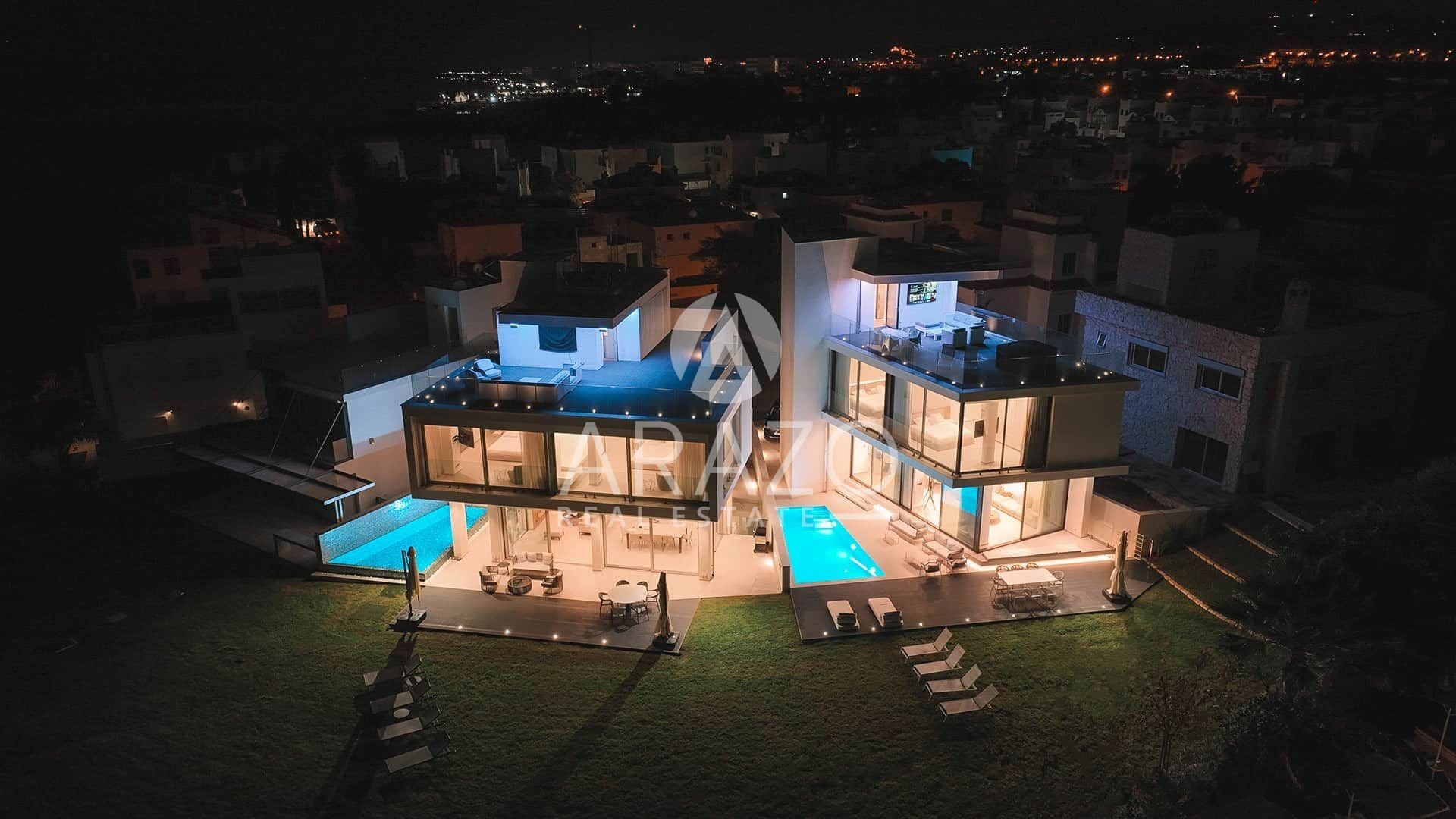 The first floor includes 3 luxury bedroom-suits 36sqm each, all with en-suite bathrooms all with walk-in showers.