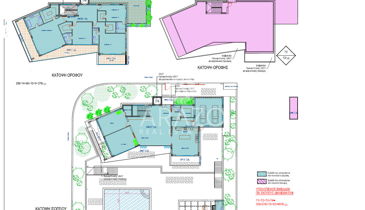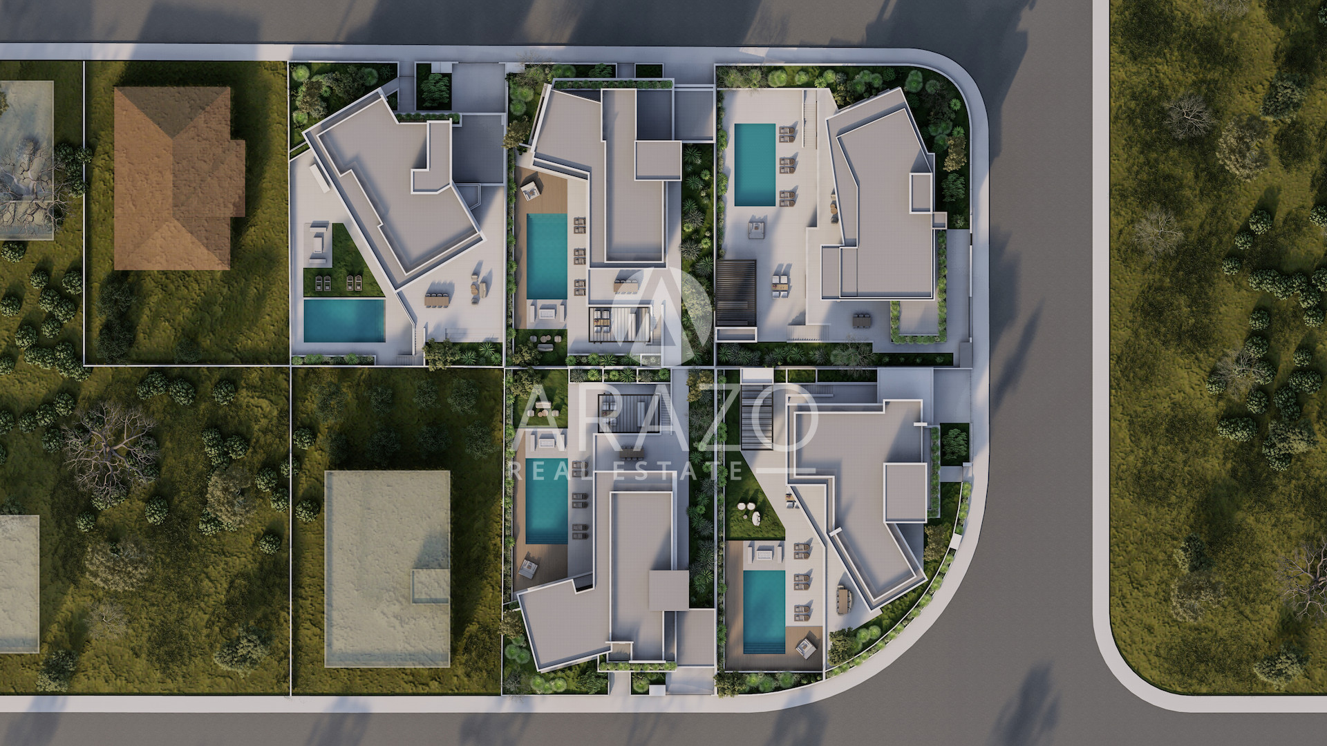 Nestled on five generous 955 - 1,116 sq.m. plots, spacious three-level villas with stunning panoramic sea views epitomize luxury living. The covered areas range from 800 to 1000 sq.m.