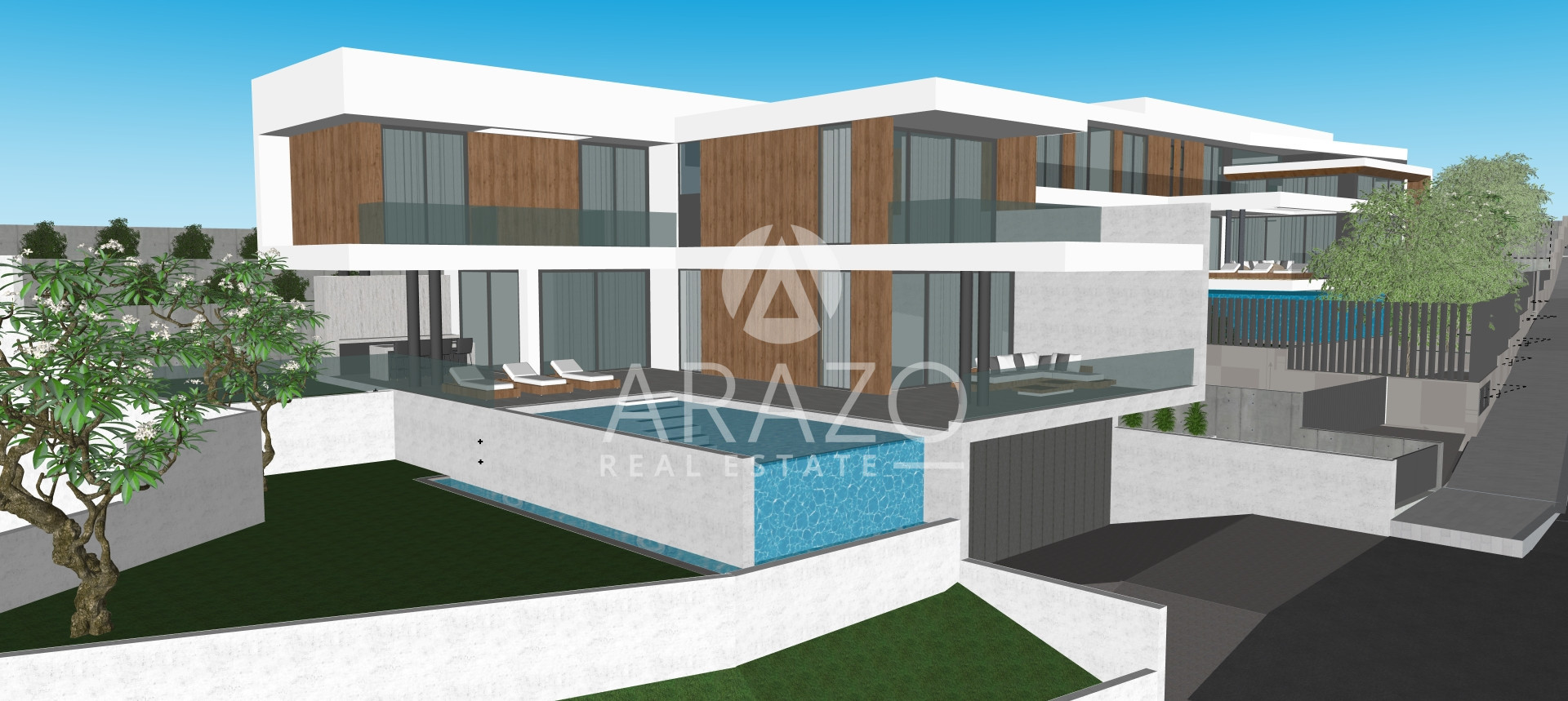 Designed with both style and practicality in mind, the villa includes a versatile basement, and convenient elevator access to all levels. Enjoy the comfort of underfloor heating throughout, paired with high energy efficiency (Class A) for year-round savings. Step outside to a large plot with your own private swimming pool, perfect for relaxing or entertaining.