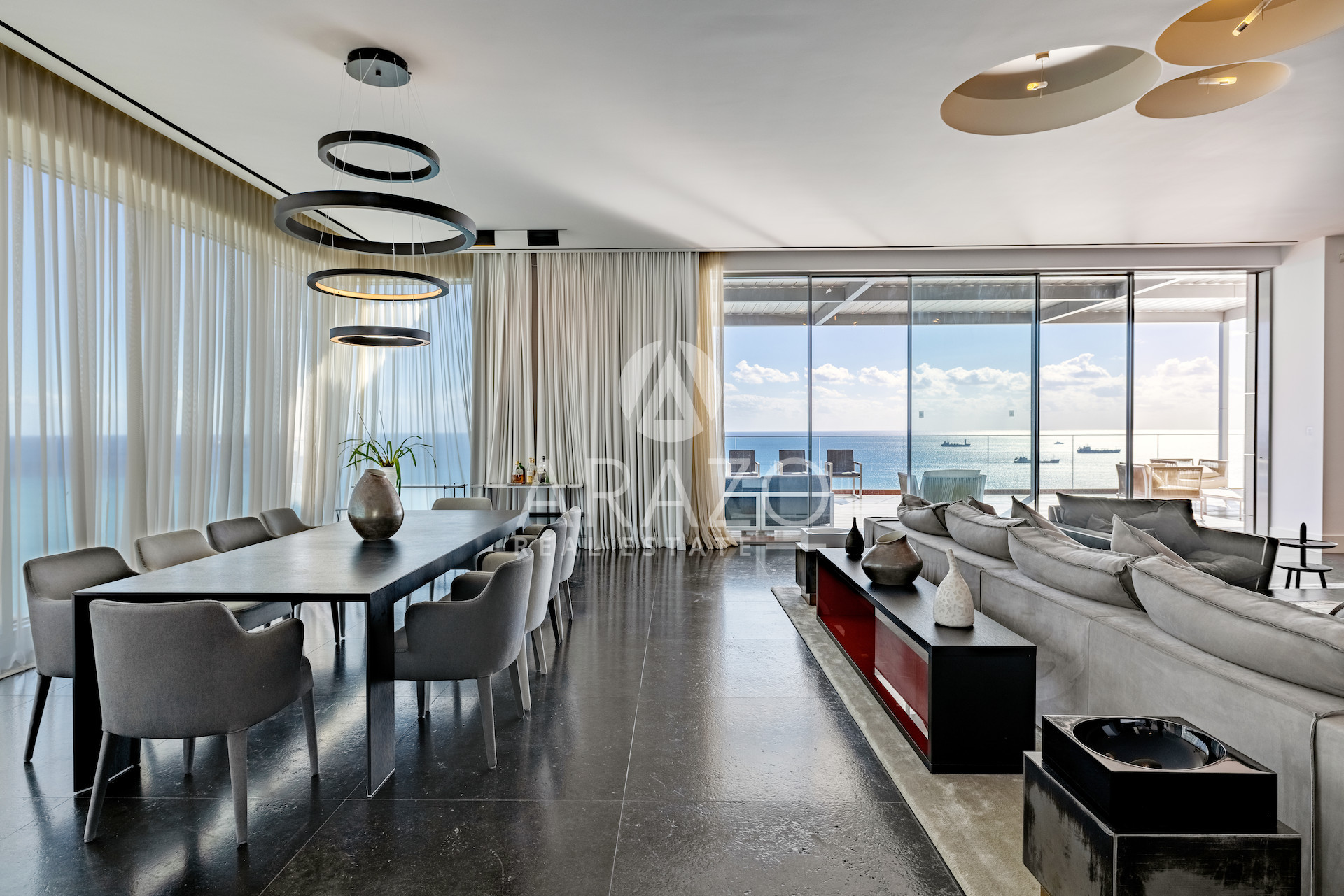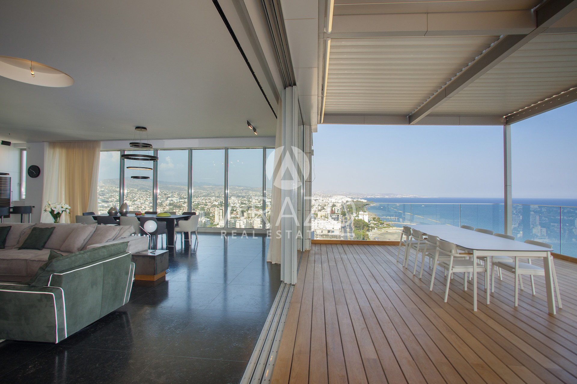 High above the Mediterranean, overlooking Limassol, the Penthouse unfolds across 1,037 square meters and two full floors of a Luxury Residence. A private lift opens into a dedicated entrance hall, leading into expansive living areas framed by floor-to-ceiling glass and sweeping verandas.