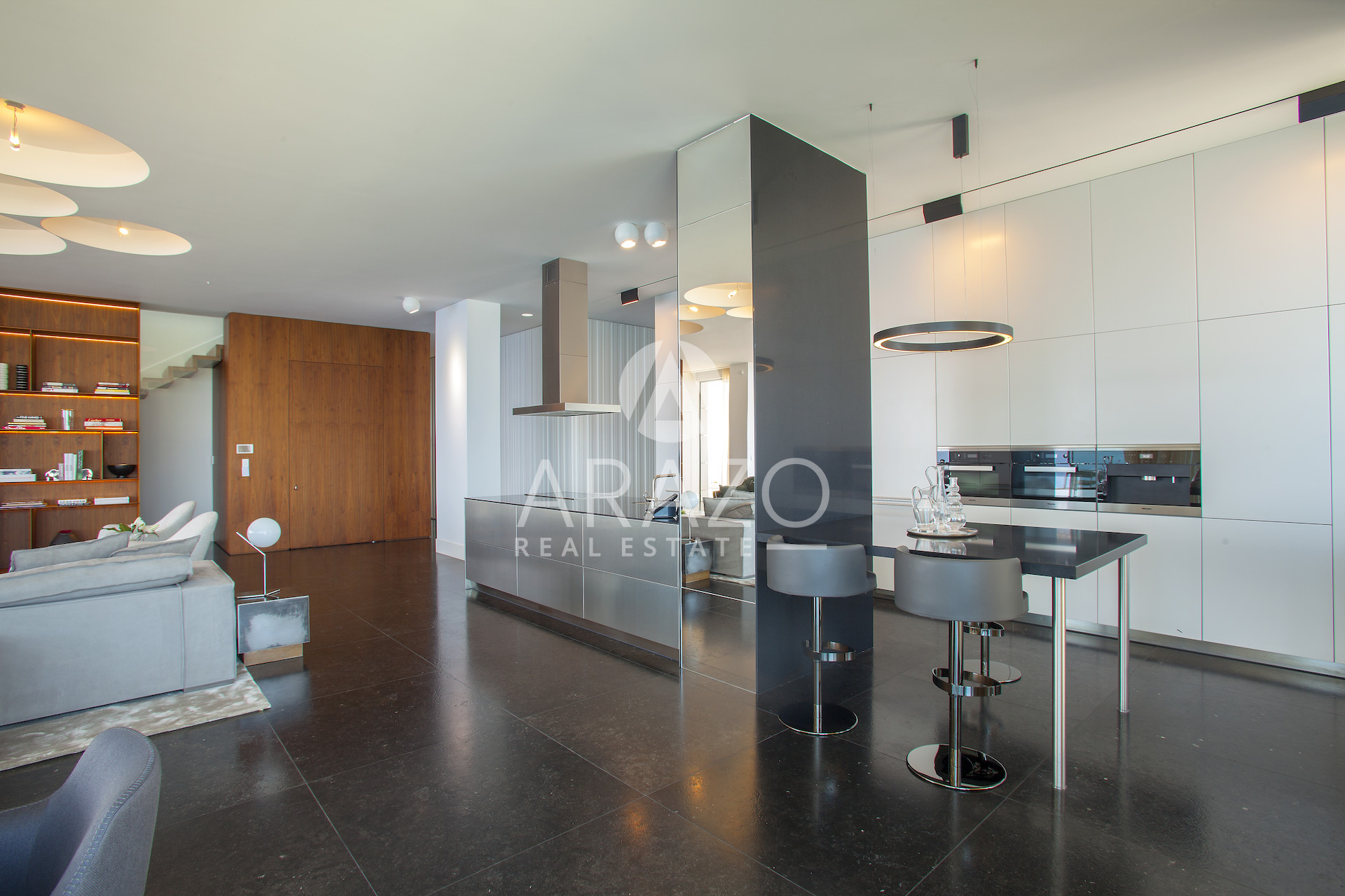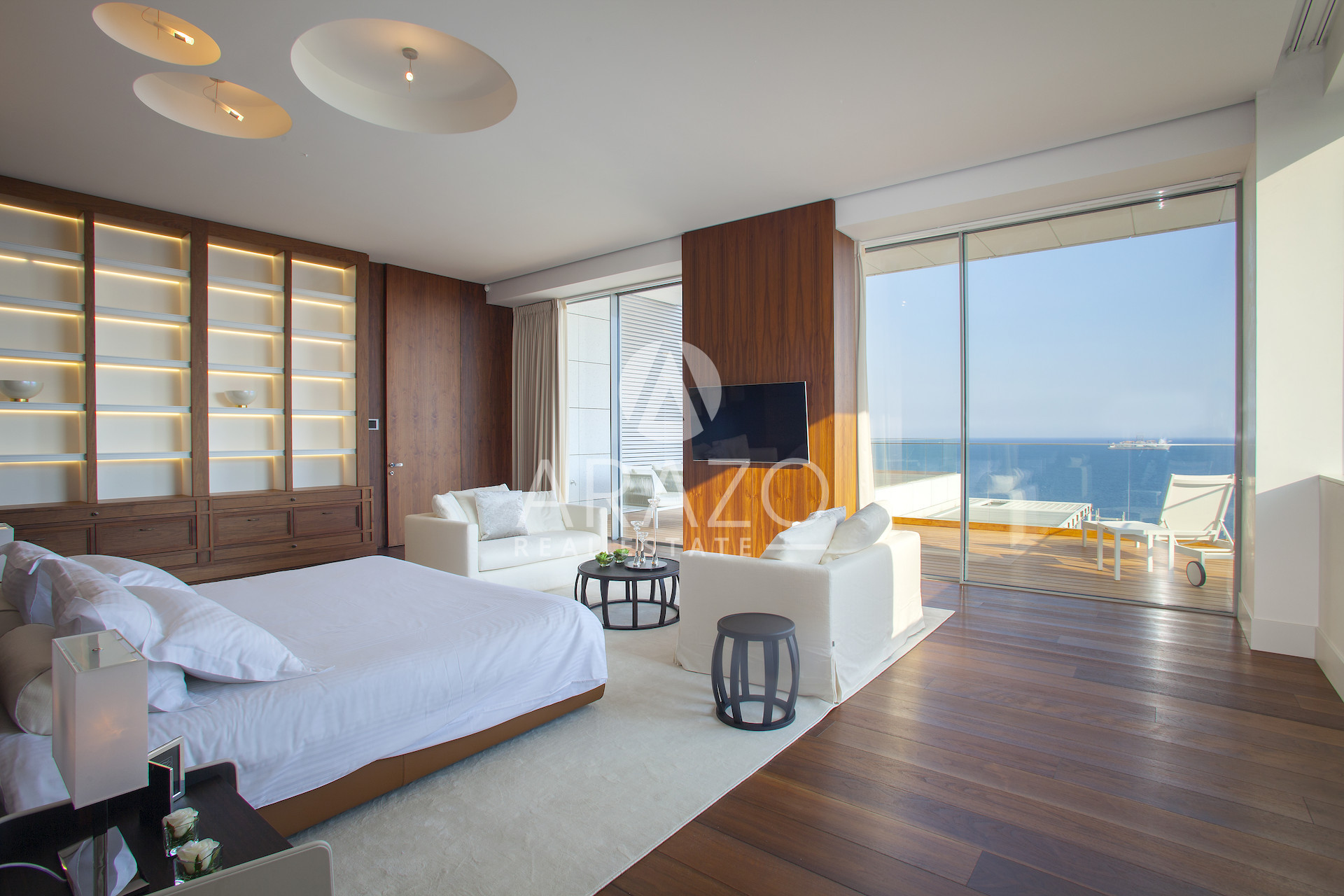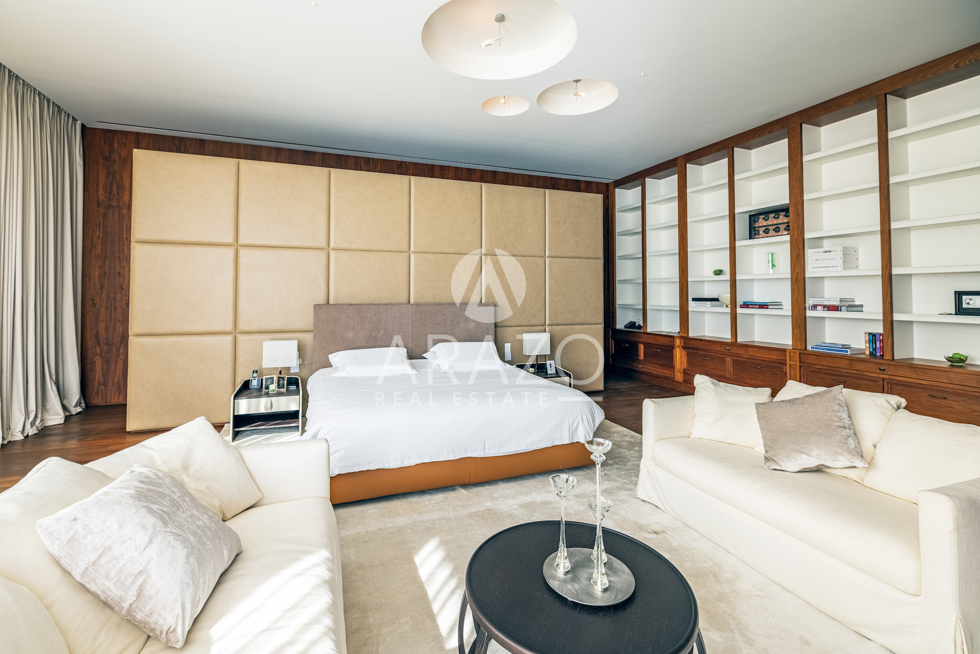 Here, every element is composed with precision: Italian marble and handcrafted parquet underfoot, Burma teak softening the terraces, bespoke cabinetry, and a fully integrated Crestron system orchestrating light, sound, and climate.