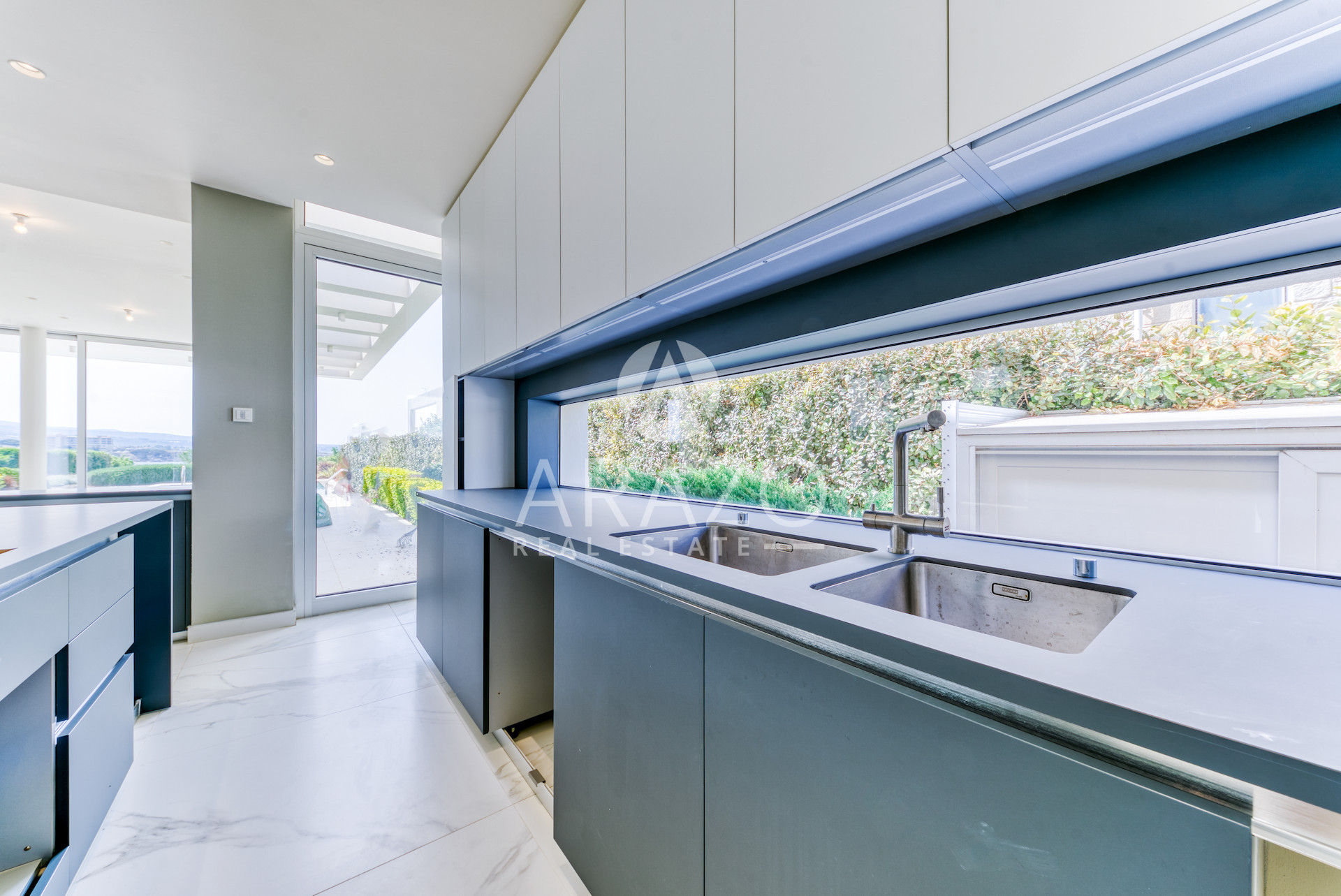 5-bedroom, 5-bathroom luxury villa is located in the most prestigious area of Paphos. The contemporary architecture of this villa and the luxury finishes are ideal for a luxury waterside living. Contemporary design, perfect layouts and high-end interior finishes, VRV-conditioning, underfloor heating, Italian kitchen and branded sanitary ware provides unparalleled comfort and life style.
