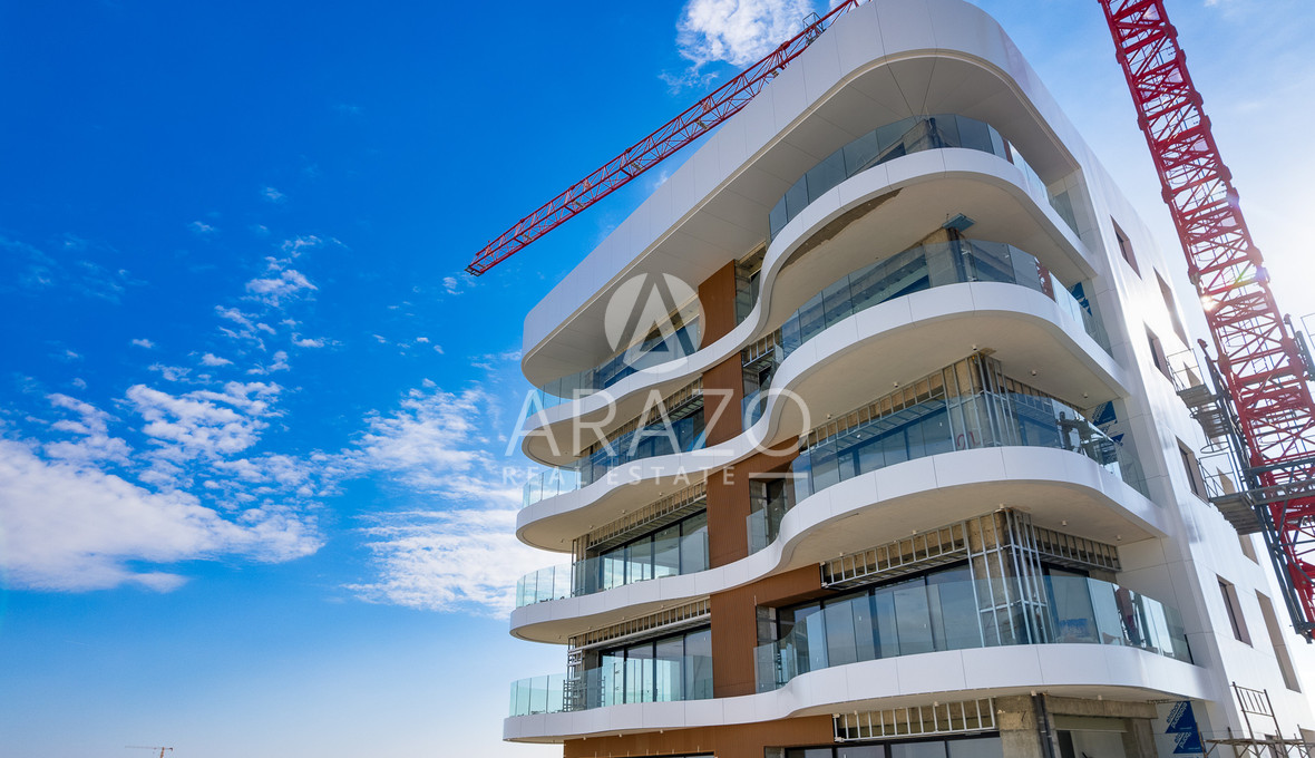 The building boasts a pure white façade, while the intertwining, organically bending curves of the balconies offer striking, uninterrupted views of the old city behind the Venetian walls and the surrounding Pentadactylos Mountain beyond. The uniquely designed balconies take advantage of sunlight, while forming an offset arrangement of living spaces that enhance privacy.