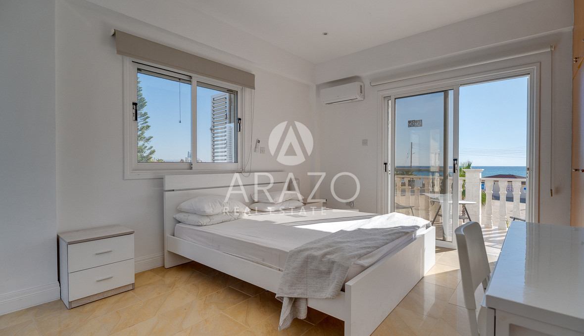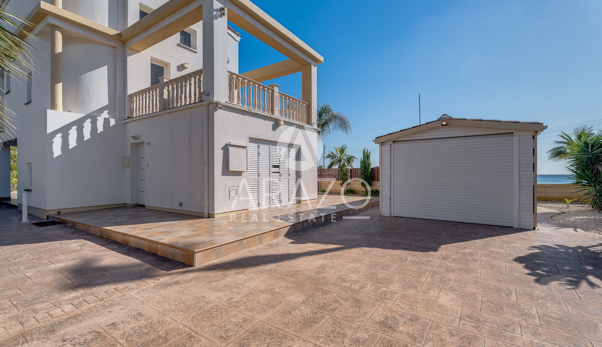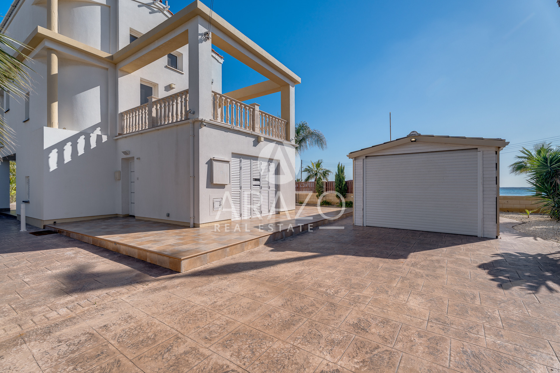 The villa's living spaces are bright and welcoming, opening onto a private swimming pool area where you can relax or entertain guests. The large windows and terraces provide stunning panoramic views, including an uninterrupted sea view. Its exclusive sea-front position gives you direct access to the coast and a unique connection to the tranquil Mediterranean waters.