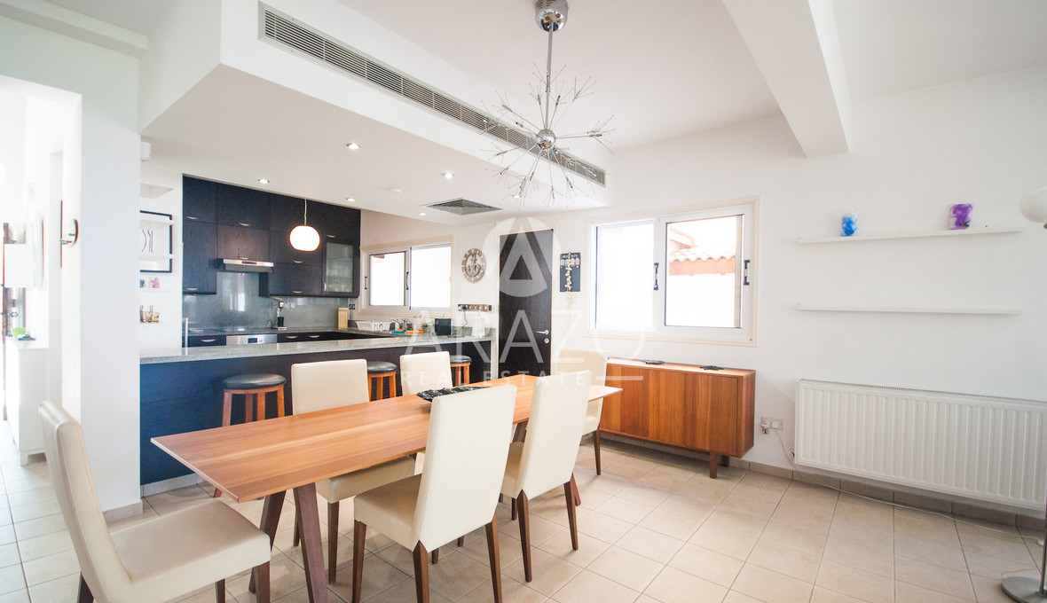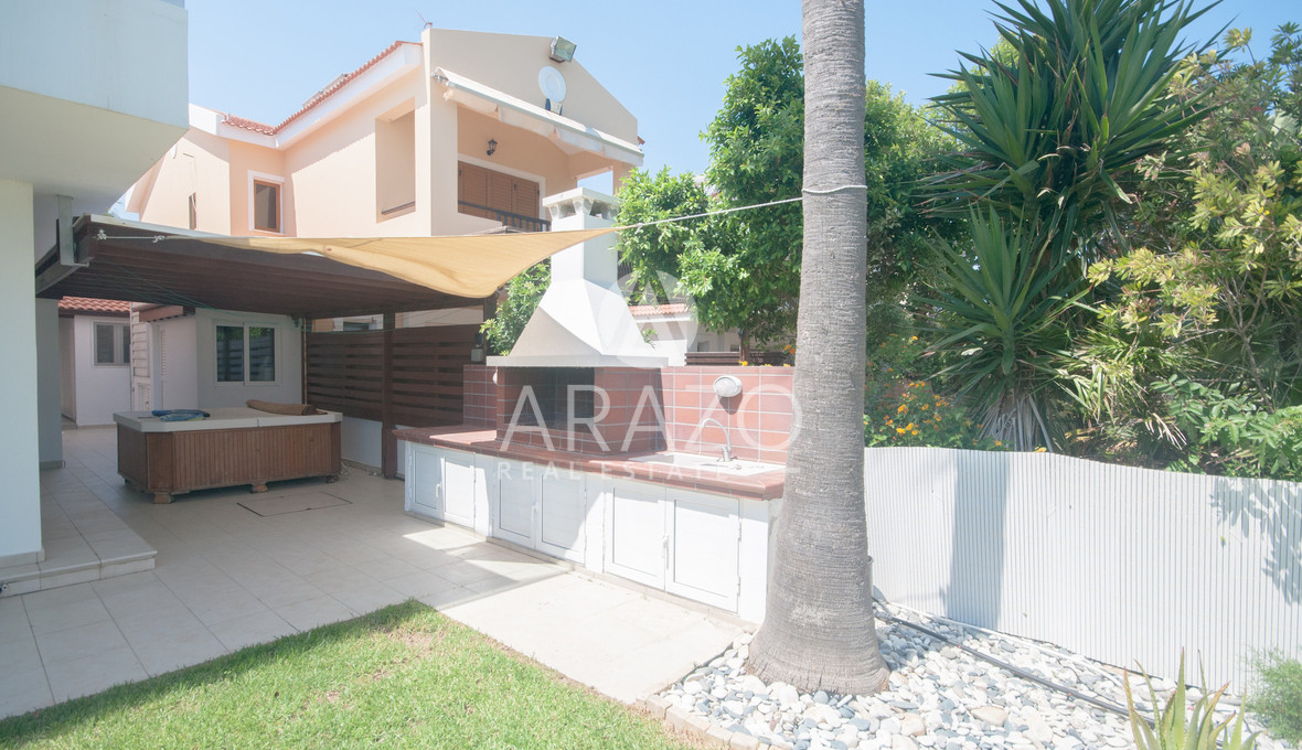 For sale is a spacious detached villa in Meneou, offering a comfortable and private lifestyle. This resale property has an internal area of 168 square meters and sits on a large plot, providing plenty of space for outdoor living and relaxation. Built in 2000, the villa has four bedrooms and four bathrooms, making it ideal for families or those seeking extra space for guests.