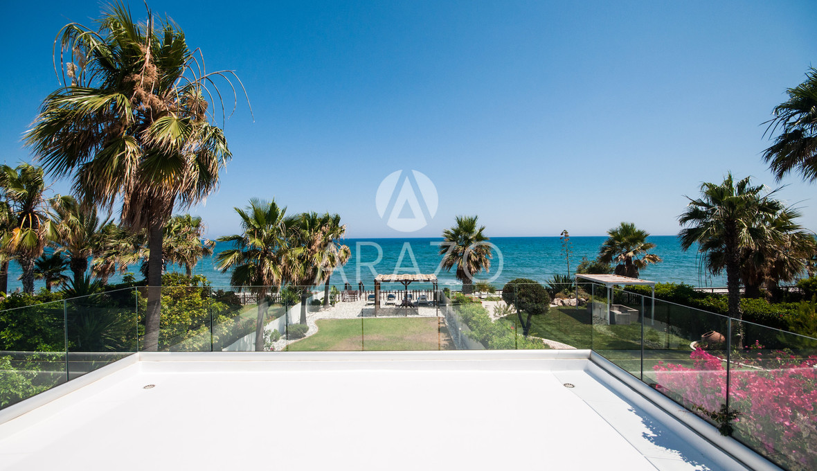 The villa is partially furnished, allowing you to move in with ease while allowing room for your personal touch. The highlight of the property is its panoramic views, including stunning sea views from multiple vantage points. As it is situated right on the seafront, you can enjoy the calm and beauty of the coastline every day.