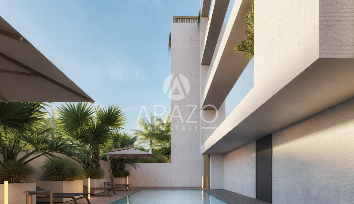 Each residence is thoughtfully crafted with modern architecture, expansive private balconies, and breathtaking views of lush green zones and the Mediterranean Sea. The complex features private parking, independent storage spaces, and a communal swimming pool, ensuring a perfect blend of convenience and luxury.