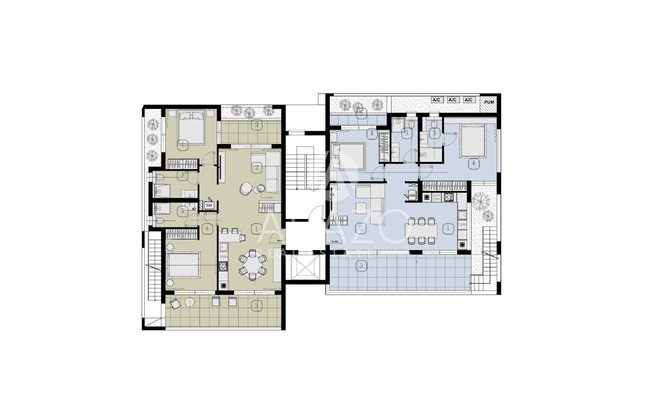 Each residence is thoughtfully crafted with modern architecture, expansive private balconies, and breathtaking views of lush green zones and the Mediterranean Sea. The complex features private parking, independent storage spaces, and a communal swimming pool, ensuring a perfect blend of convenience and luxury.