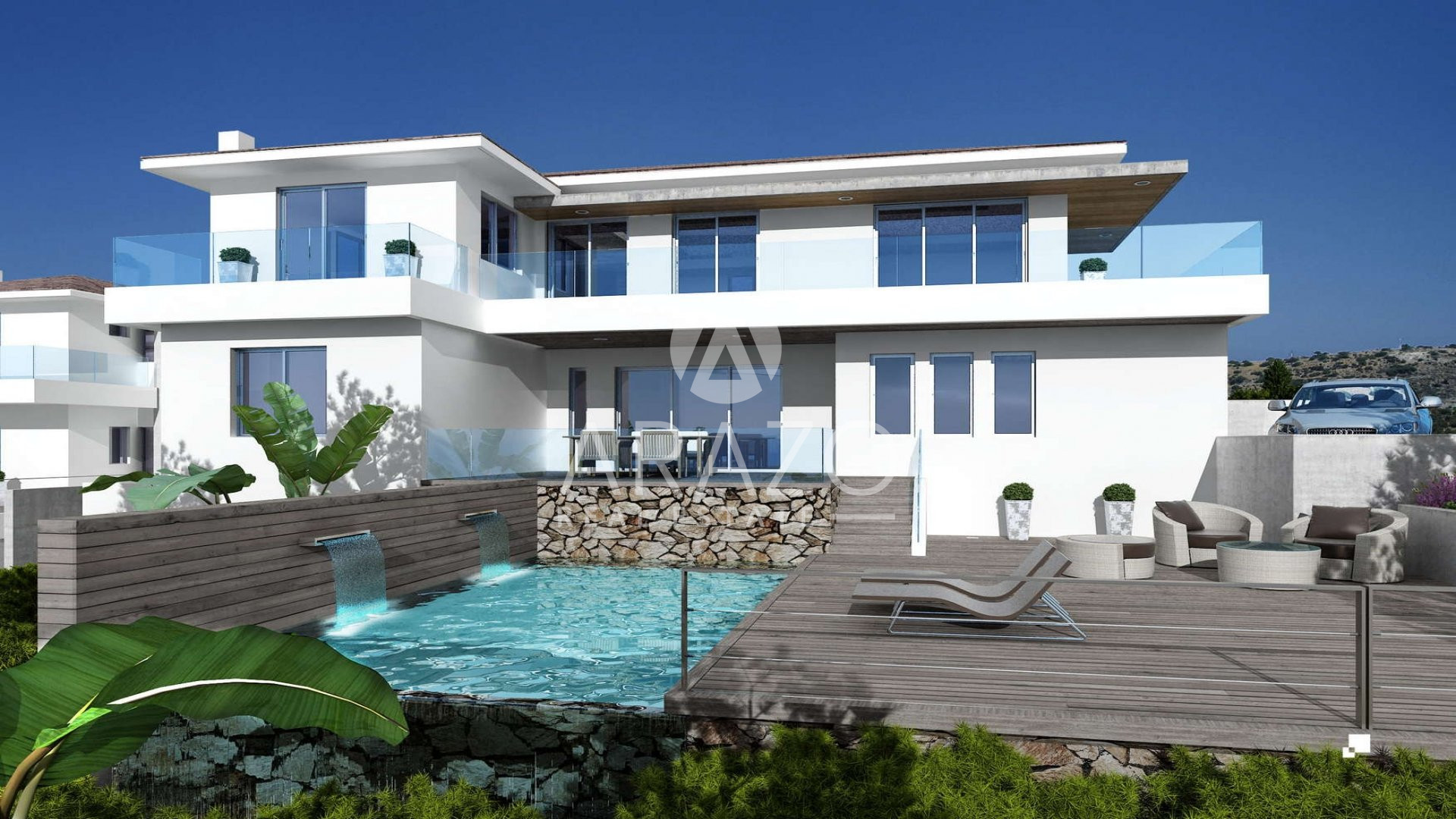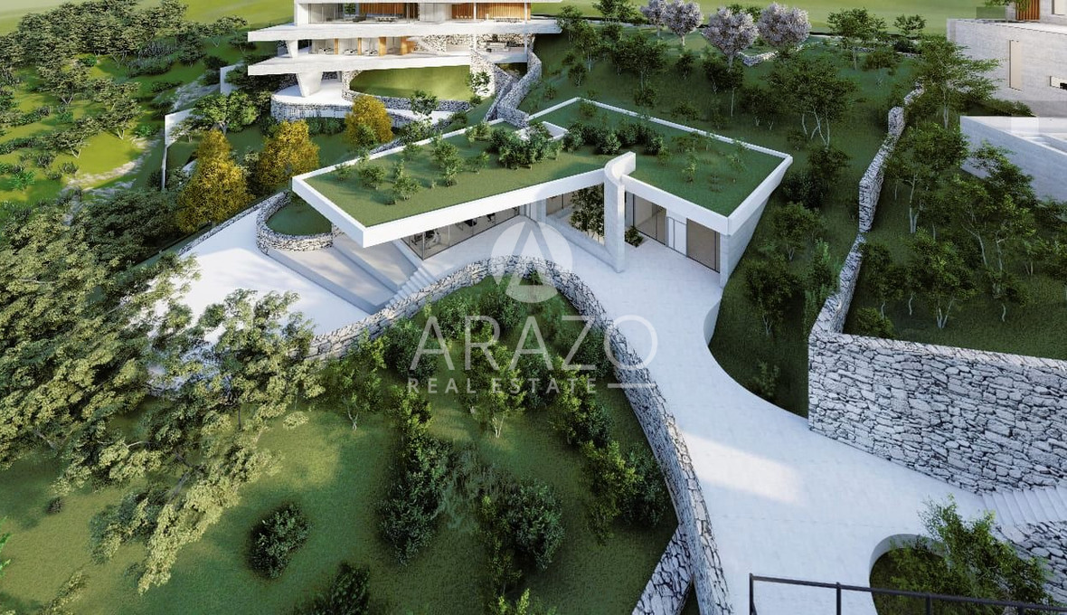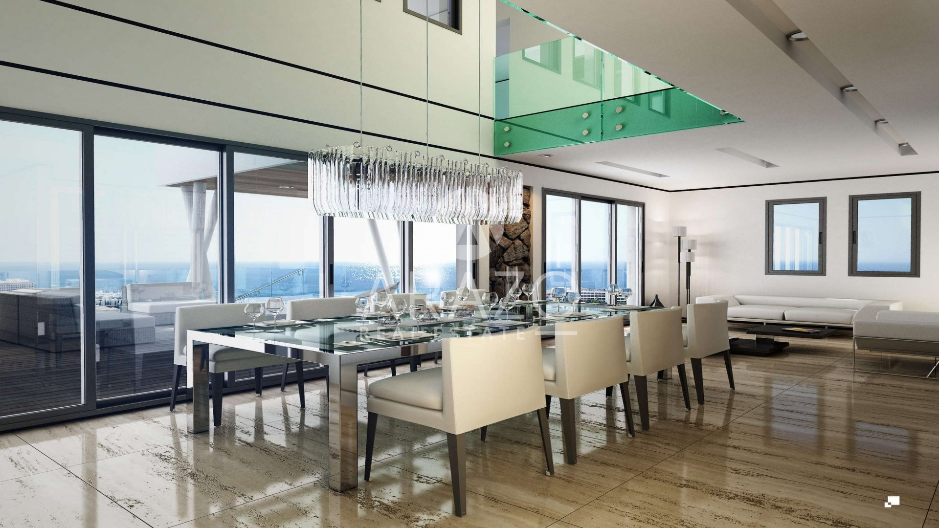 The architecture of the villas copies the outline of the plots themselves thus pointing out the uniqueness of the project. Interior and exterior areas run into one another as well as into the magnificent views, blending with each other, architectural landscapes and volumes. None of the houses look alike. The architectural sleek design of the villas conveys the location relevance of each of them. Swimming pools with infinity edge waterfall outline the spectacular sundecks and barbeque areas, which are carefully positioned to suit an array of entertainment and relaxing atmosphere. Comfort and privacy of your living are guaranteed even by the shape and location of the plots. For example, you may enter your villa through an intimate entry; take the elevator down to the living quarters and open up to a limitless view that shall embrace you along with the carefully selected landscaped garden and a sea-facing infinity swimming pool.