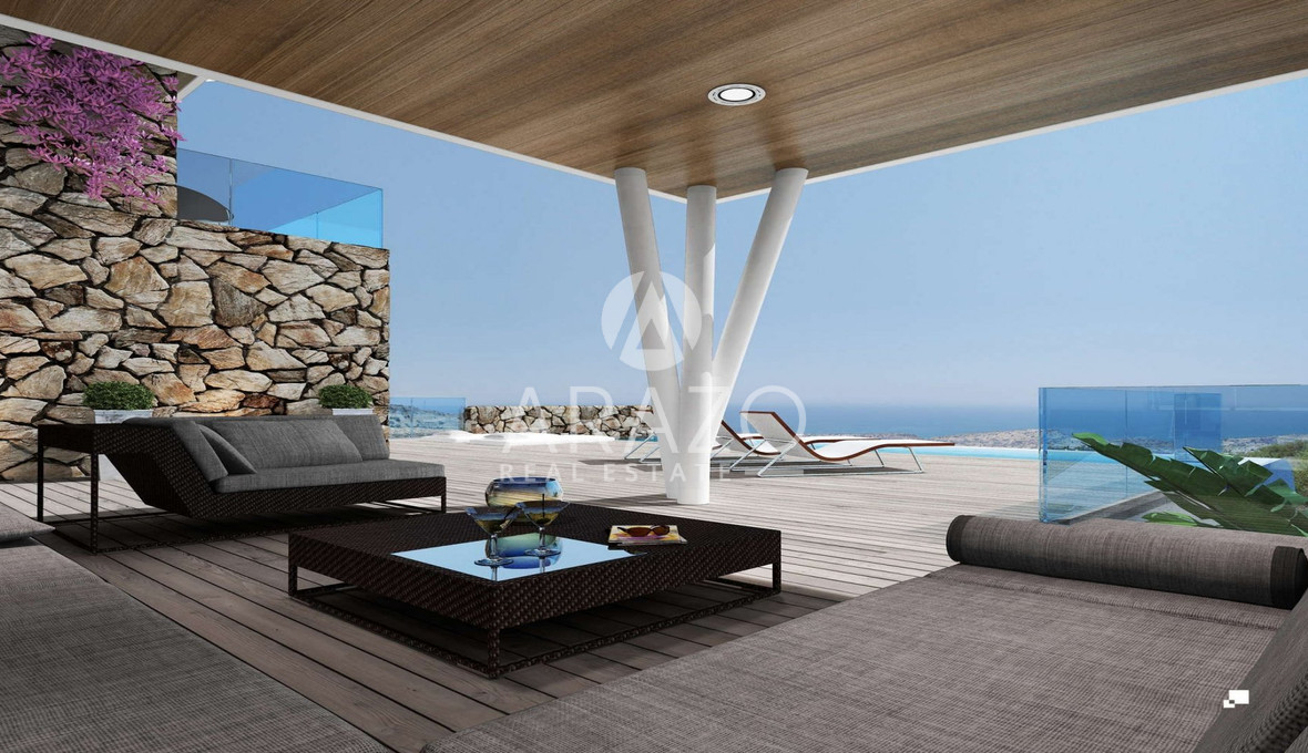 This superb project is an oasis of luxury and comfort in the mountainous area nearby Limassol, combined with a charming view of surrounding area, is worth your attention! If you seek privacy, comfort and aesthetic pleasure, then you should see the project. It's hard not to fall in love with it. There are 16 VIP villas in total. The project elevation difference is 11m which gives a soaring feeling to every plot as if challenging gravitation of the complex as a whole. All villas are a true masterpiece. Each house is specially turned to the best possible view delighting the eye. Infinity edge swimming pools and unrestrained terrace areas run endlessly out toward the seascape.