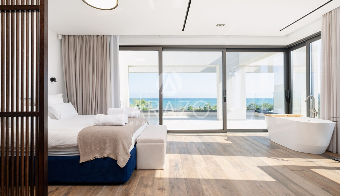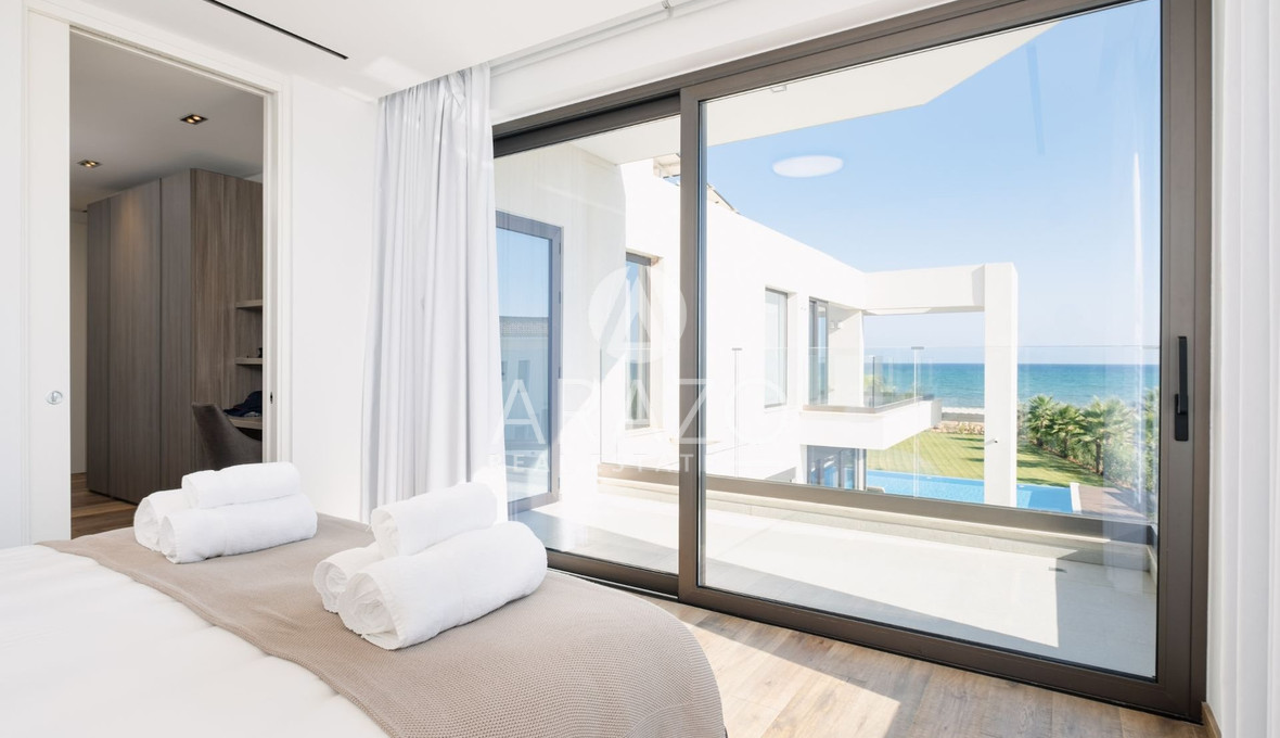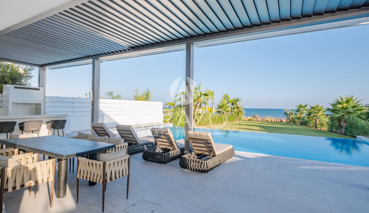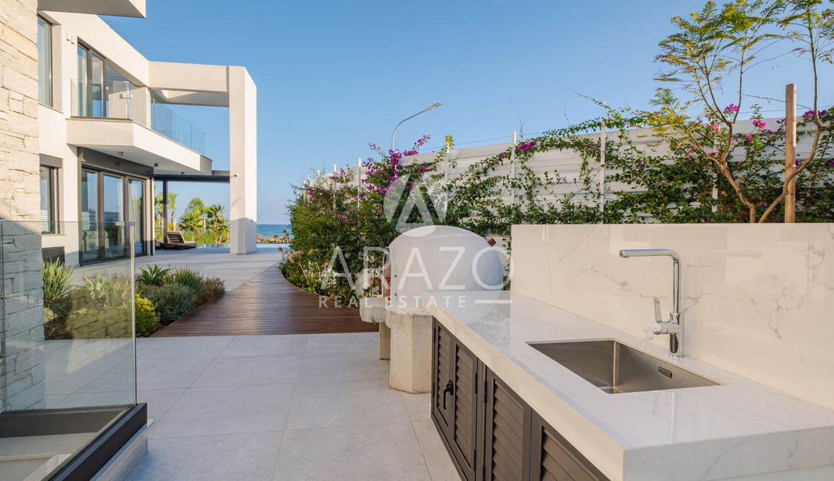 Three expansive levels, panoramic sea views, modern technologies and luxurious finishes make this villa an exquisite option for seafront living. A large green area and plot lead directly from the sea to the villa’s veranda and infinity pool, creating a beautiful view of endless horizon.