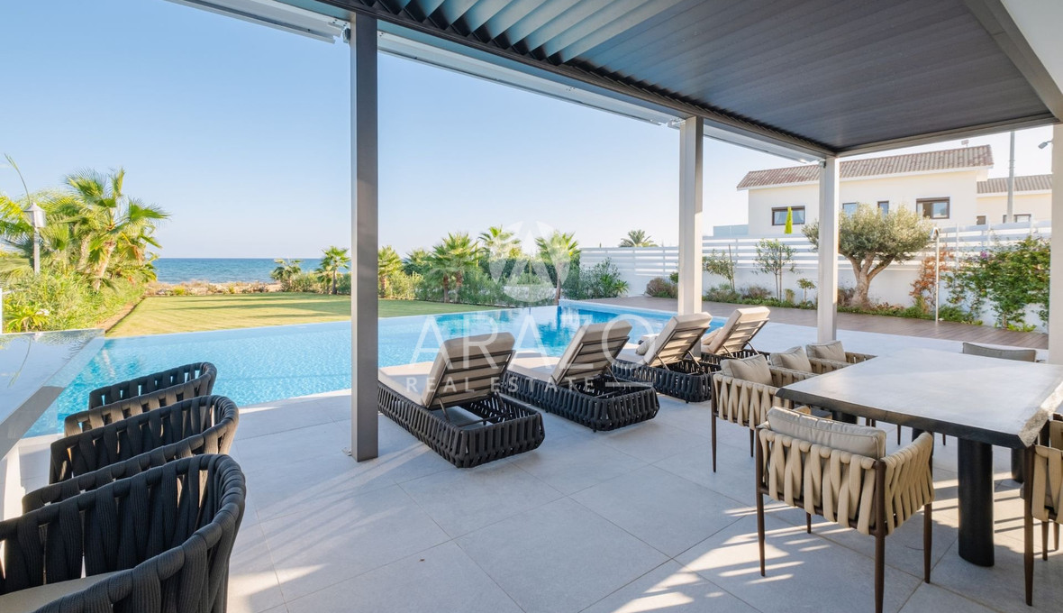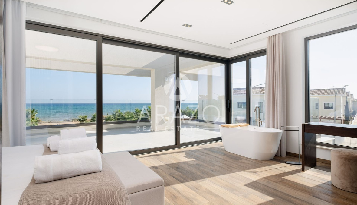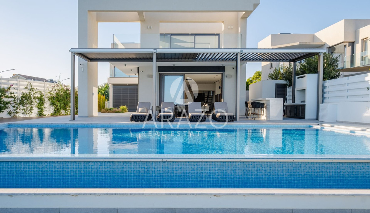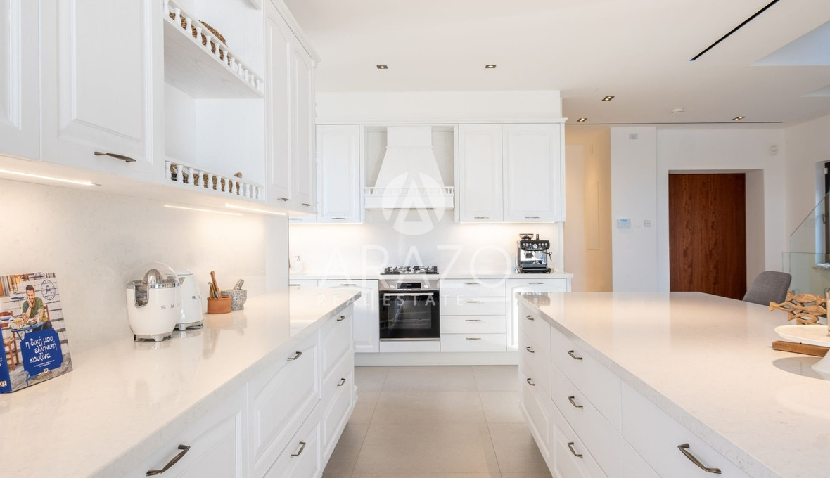 Three expansive levels, panoramic sea views, modern technologies and luxurious finishes make this villa an exquisite option for seafront living. A large green area and plot lead directly from the sea to the villa’s veranda and infinity pool, creating a beautiful view of endless horizon.