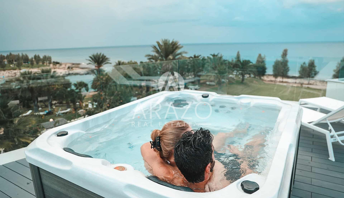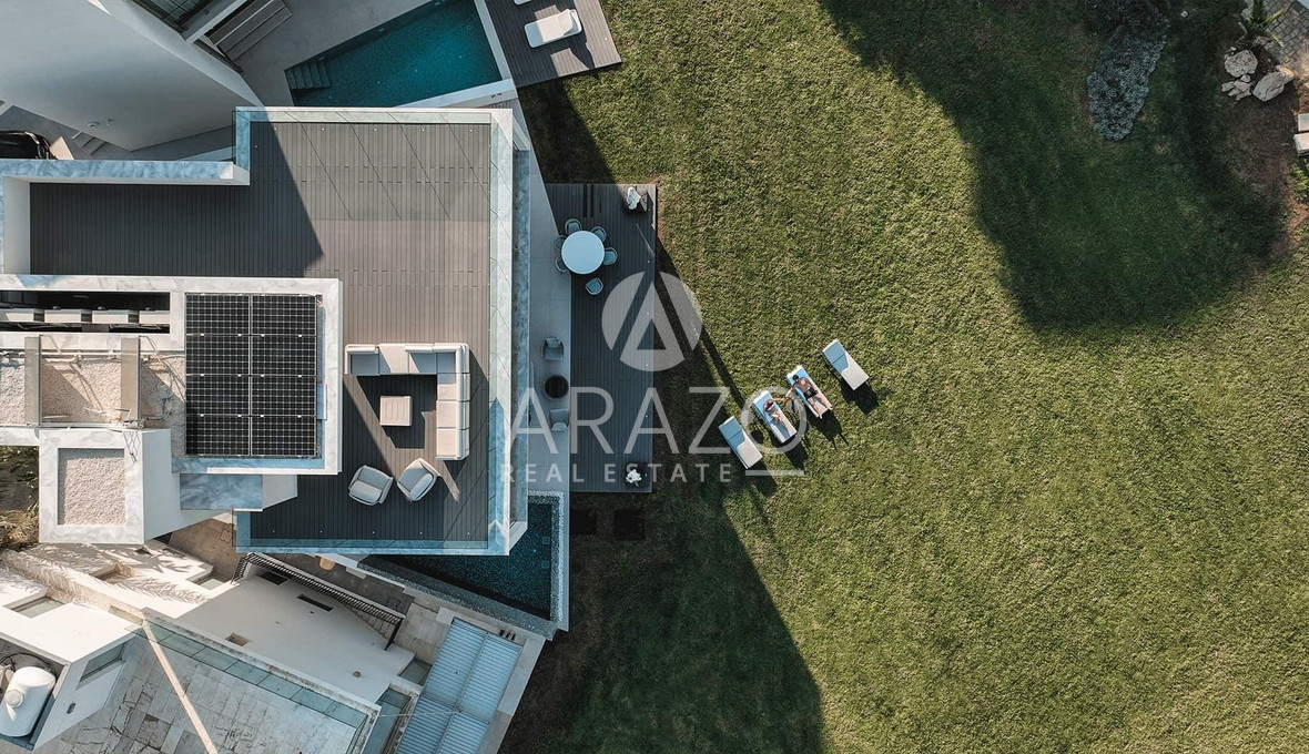 Villa Venus includes a private roof terrace 126 sqm that offers the most amazing panoramic views of the coastline, where you can sit relax or enjoy an amazing movie night under the stars. The roof includes a second fully equipped kitchen and a guest bathroom. Furthermore, on the roof you can find a 3-person jacuzzi where you can sit back relax and enjoy the infinite blues.