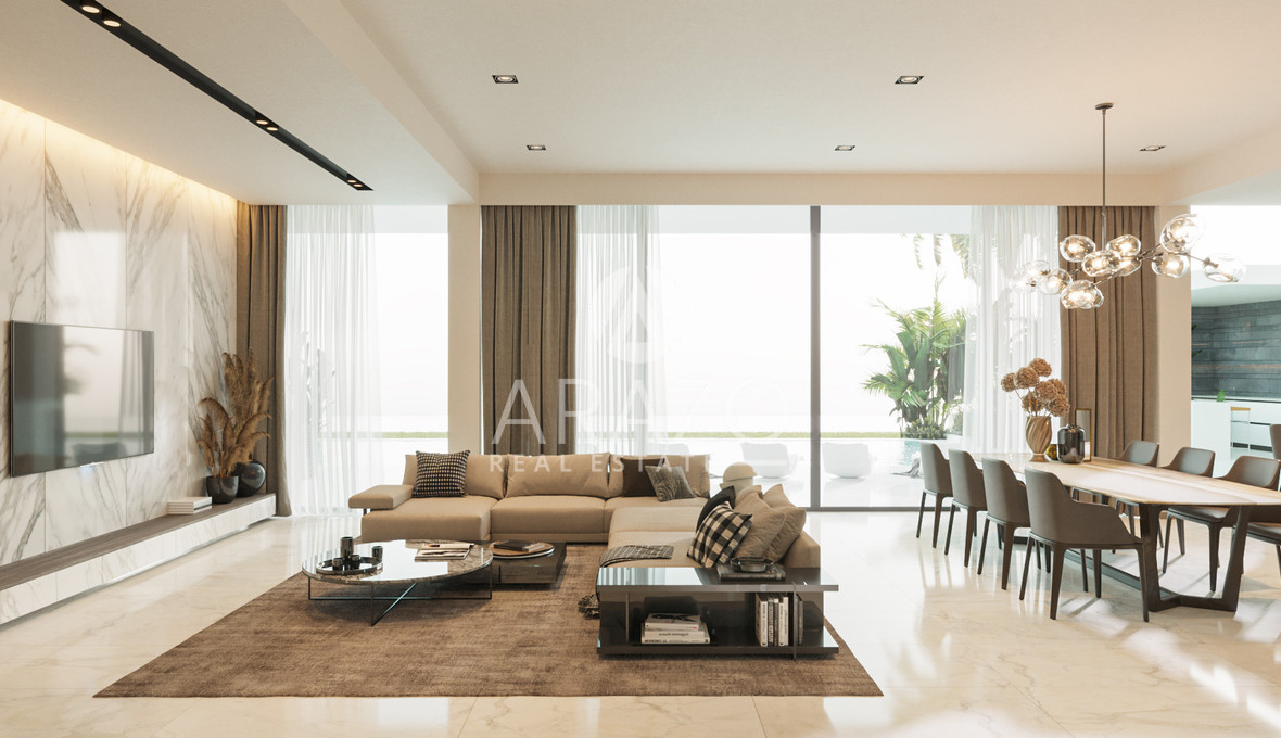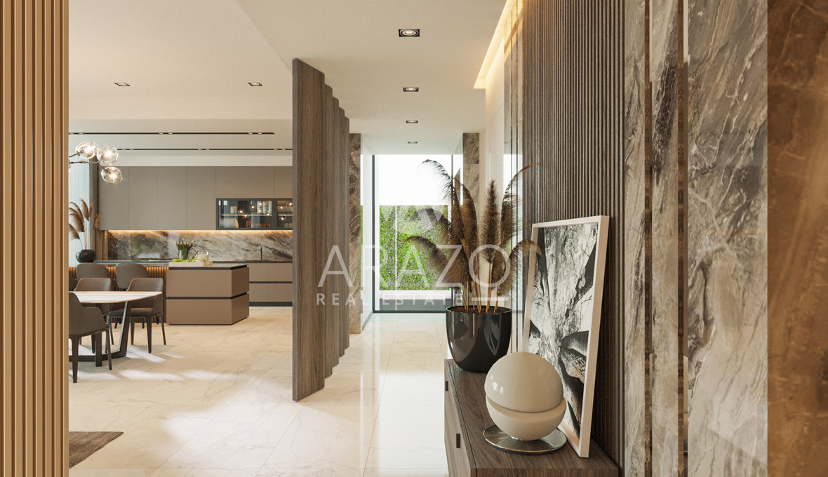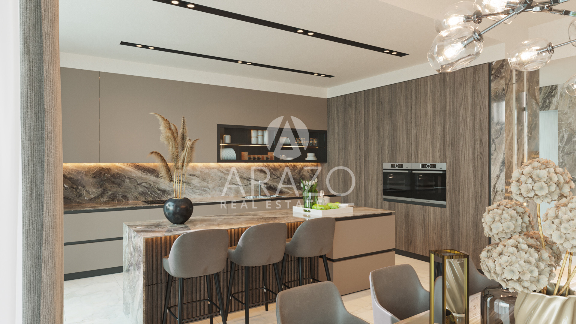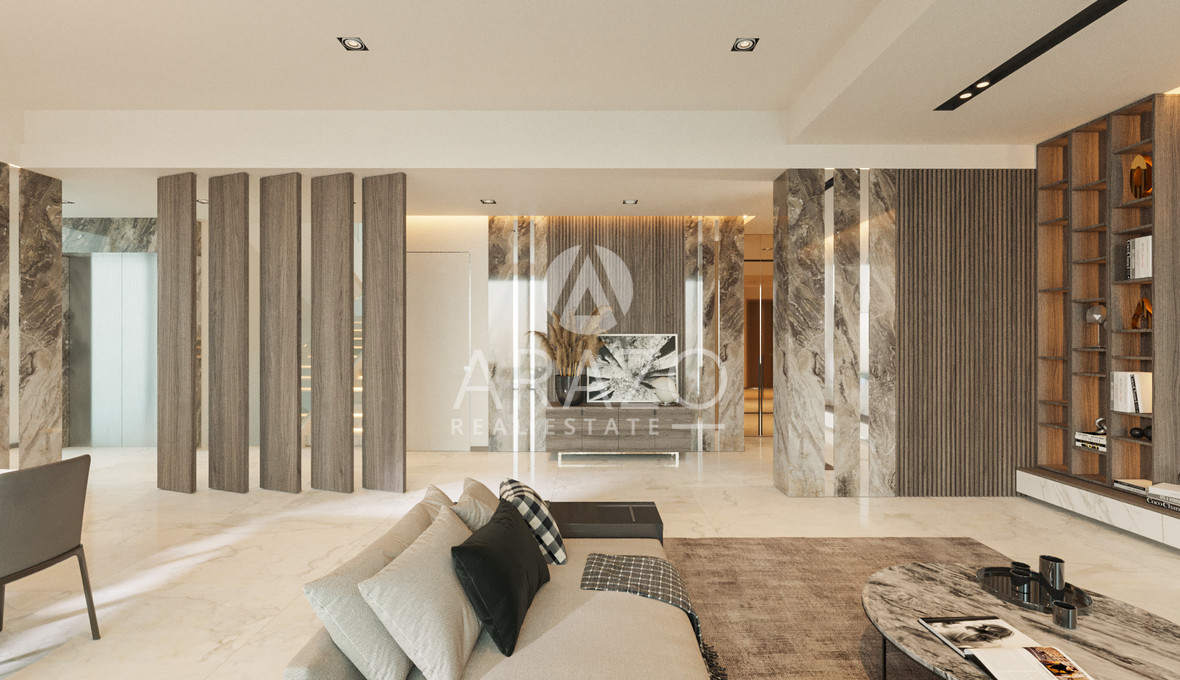 Your choice is delightfully overwhelming from small semidetached 3 bedroom houses to huge luxurious 6-7 bedroom villas with the unique views. The area of residences varies from 183 to 560 m2. Each bedroom has a private bathroom. Parking spaces can accommodate from 2 to 4 cars. The houses have a modern finish made of eco-friendly materials. The famous designers are responsible for the interior design of the villas. All properties have built-in furniture and finishes. For maximum convenience, in the basement, there is an additional free area, which you can use to arrange a cinema or a gym.