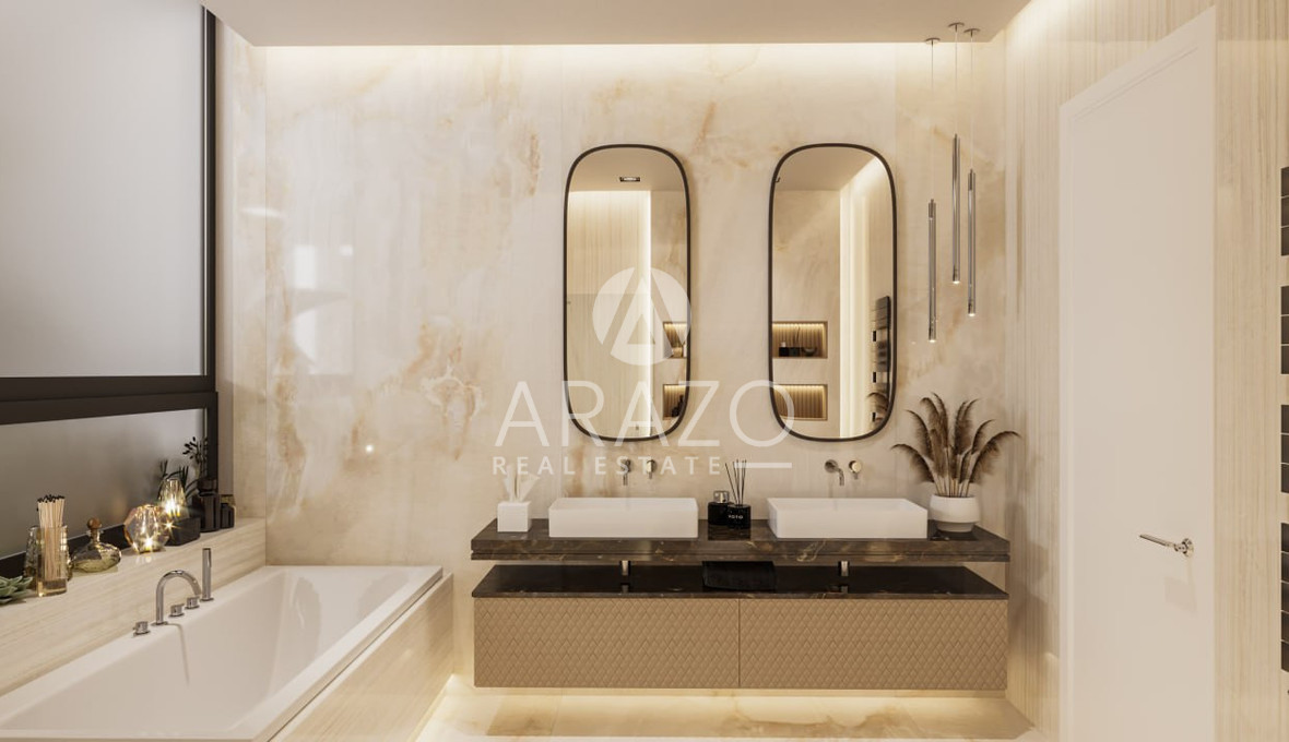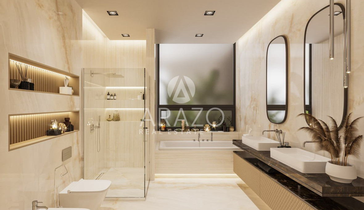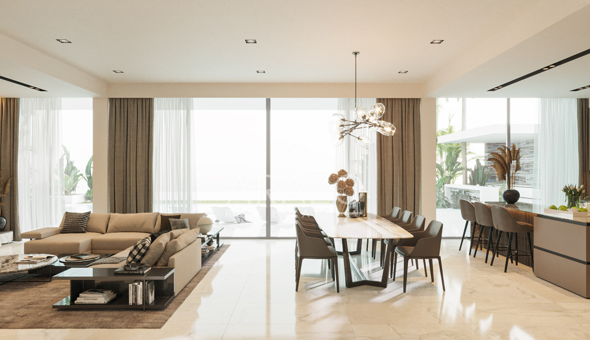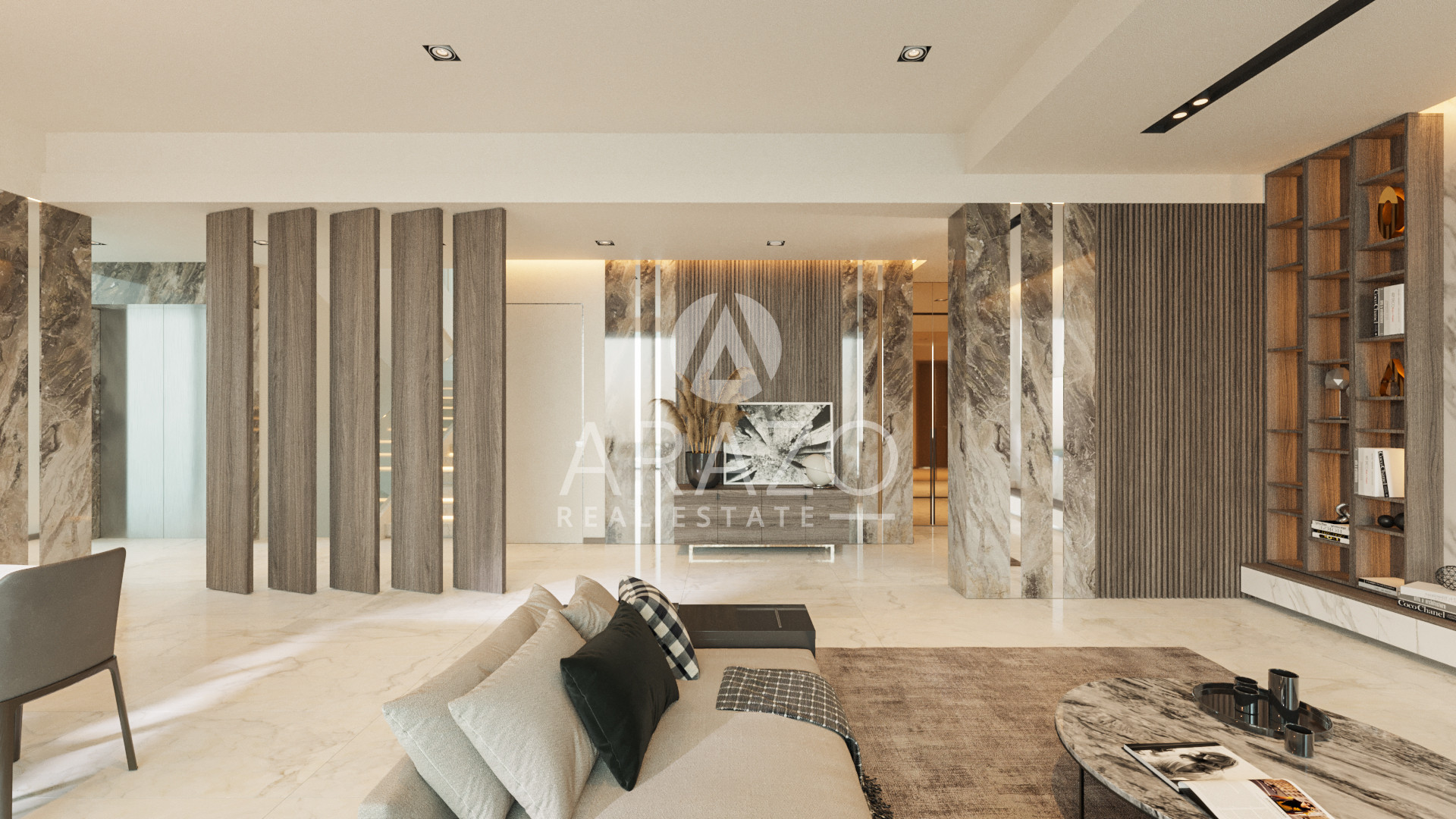 Your choice is delightfully overwhelming from small semidetached 3 bedroom houses to huge luxurious 6-7 bedroom villas with the unique views. The area of residences varies from 183 to 560 m2. Each bedroom has a private bathroom. Parking spaces can accommodate from 2 to 4 cars. The houses have a modern finish made of eco-friendly materials. The famous designers are responsible for the interior design of the villas. All properties have built-in furniture and finishes. For maximum convenience, in the basement, there is an additional free area, which you can use to arrange a cinema or a gym.