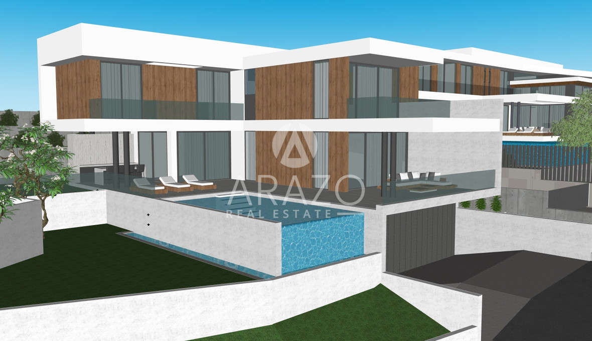 Designed with both style and practicality in mind, the villa includes a versatile basement, and convenient elevator access to all levels. Enjoy the comfort of underfloor heating throughout, paired with high energy efficiency (Class A) for year-round savings. Step outside to a large plot with your own private swimming pool, perfect for relaxing or entertaining.