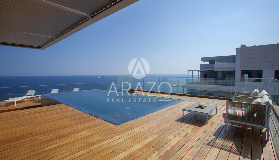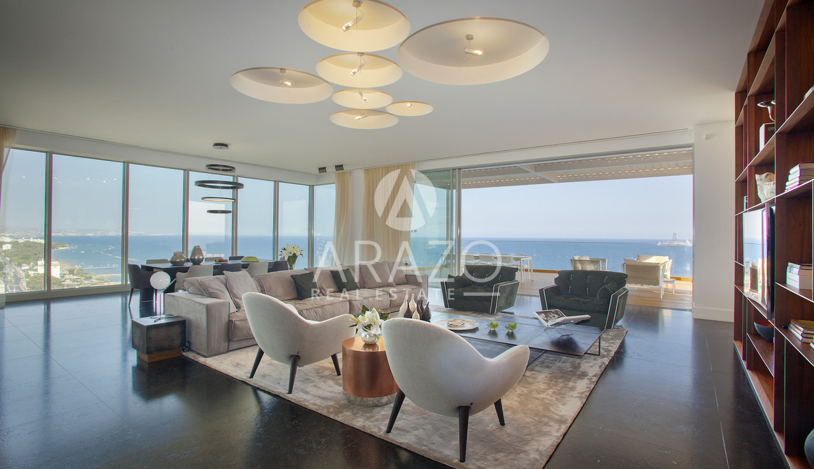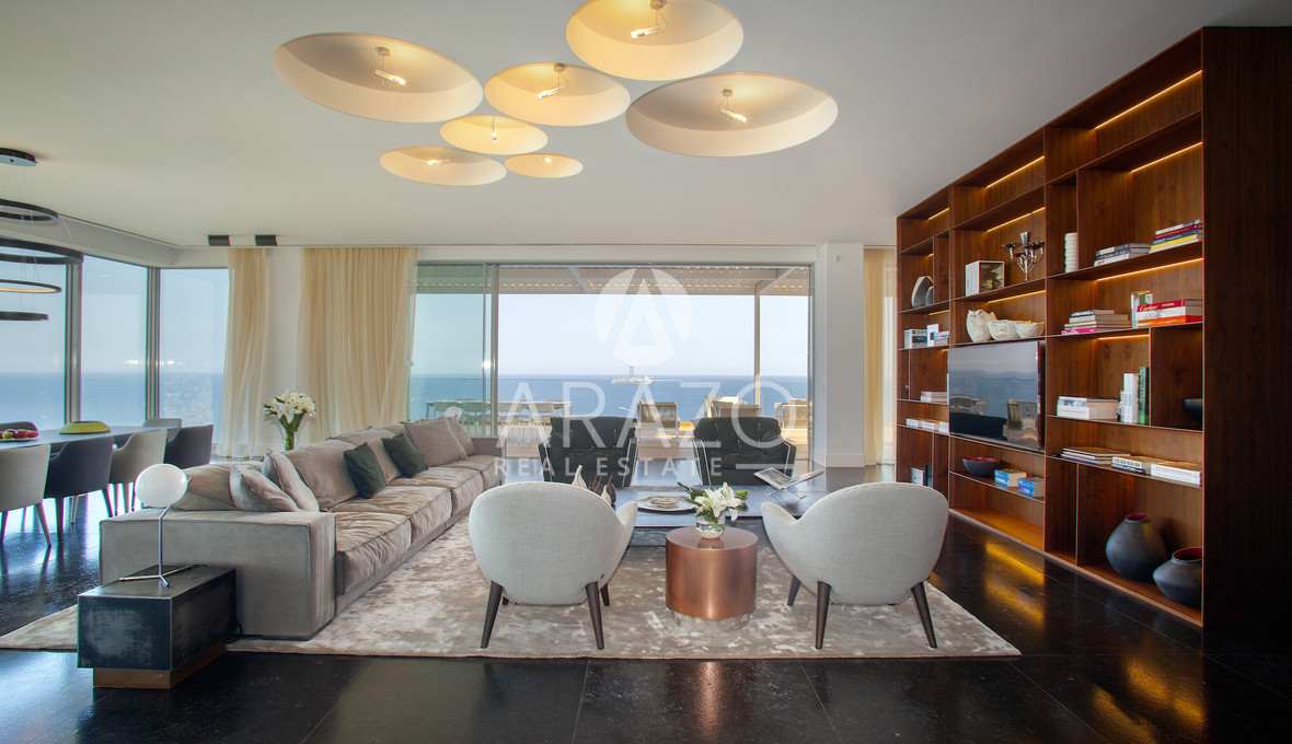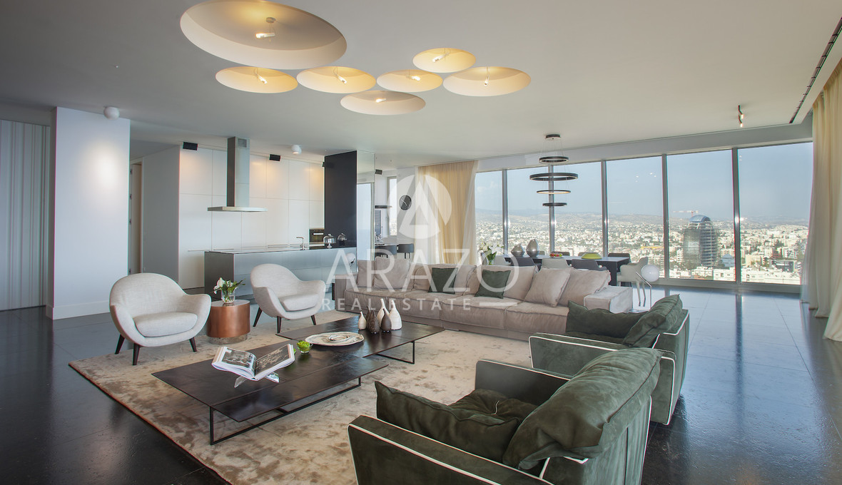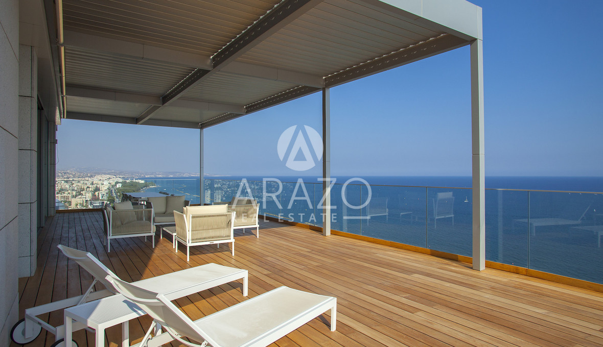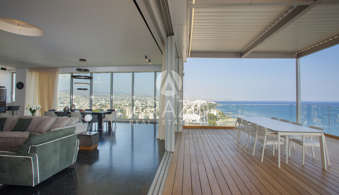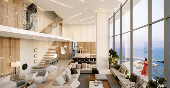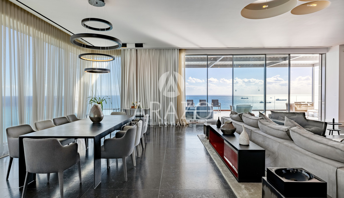 High above the Mediterranean, overlooking Limassol, the Penthouse unfolds across 1,037 square meters and two full floors of a Luxury Residence. A private lift opens into a dedicated entrance hall, leading into expansive living areas framed by floor-to-ceiling glass and sweeping verandas.