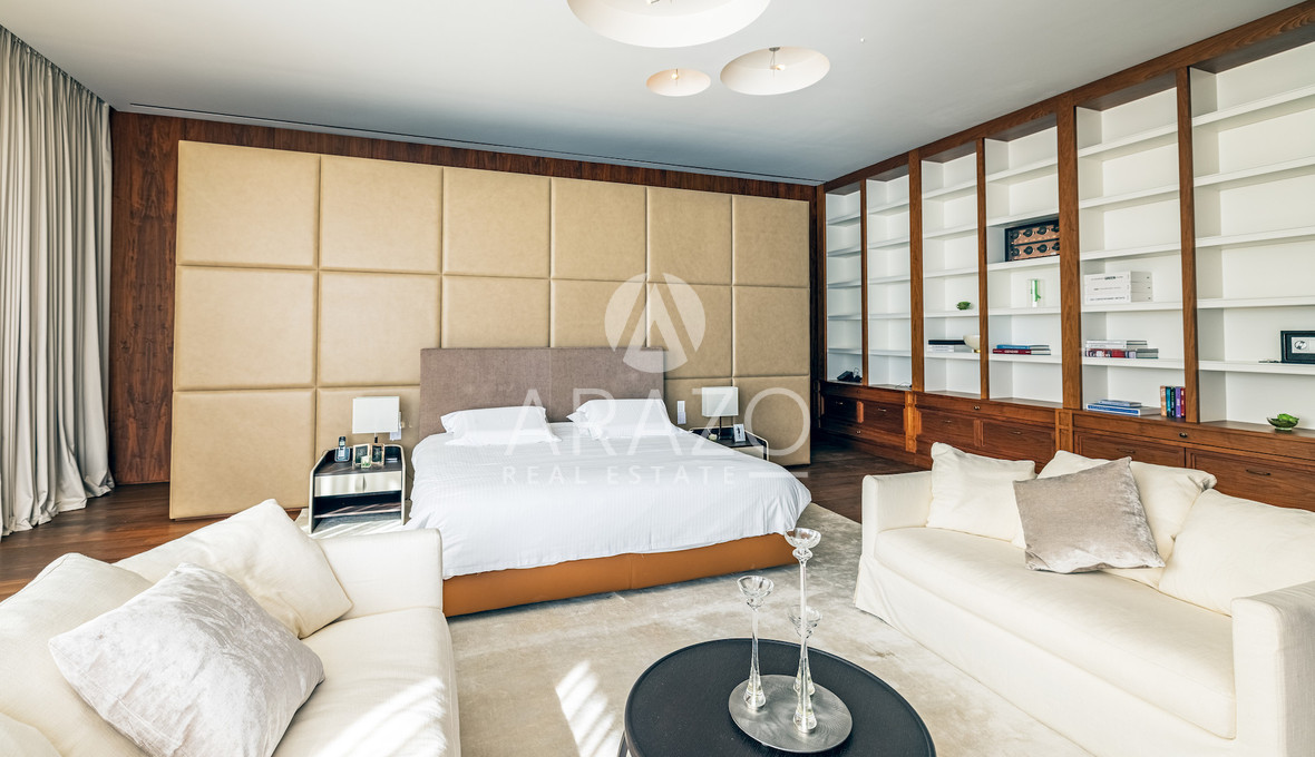 Here, every element is composed with precision: Italian marble and handcrafted parquet underfoot, Burma teak softening the terraces, bespoke cabinetry, and a fully integrated Crestron system orchestrating light, sound, and climate.