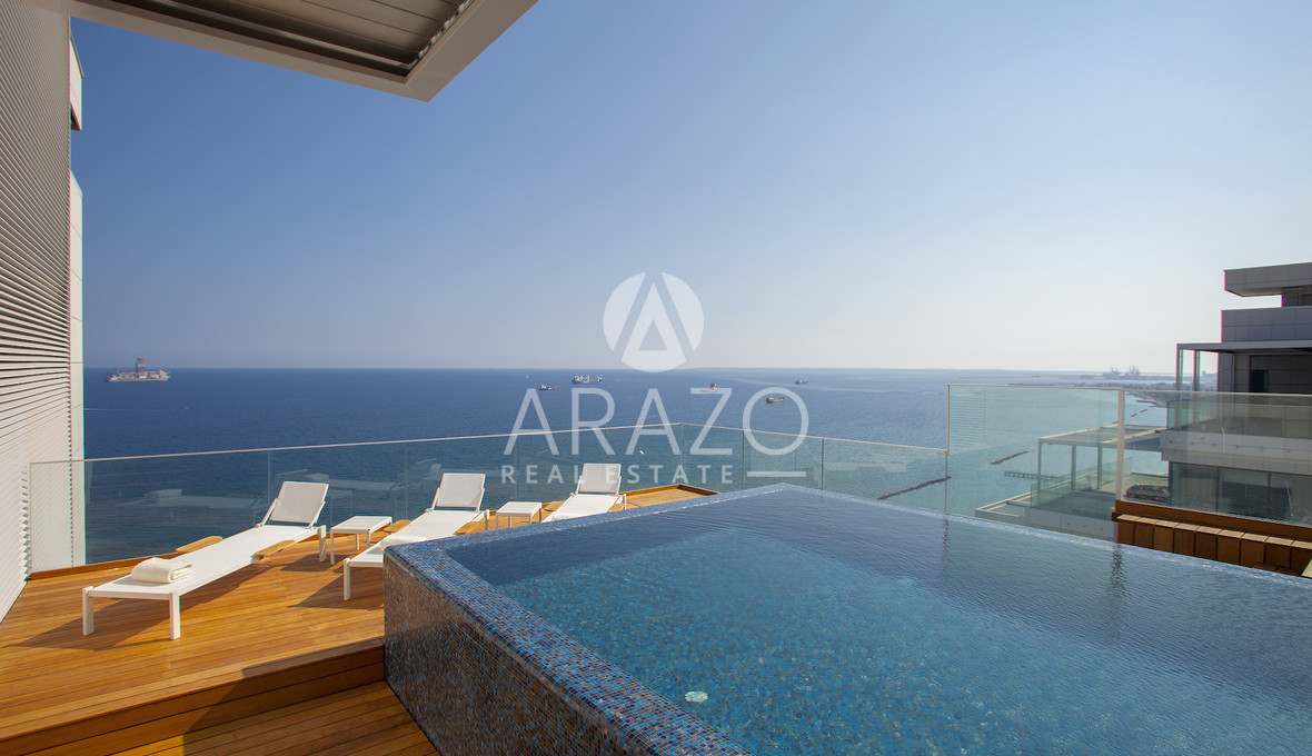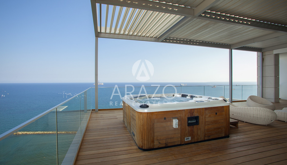 The residence holds its own world — a rooftop pool above the sea, a private cinema, a sauna, and interiors designed for both retreat and celebration. It is one of Limassol’s most elevated addresses — now offered for private acquisition.