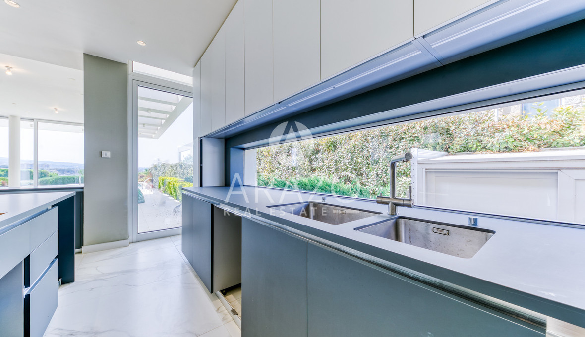 5-bedroom, 5-bathroom luxury villa is located in the most prestigious area of Paphos. The contemporary architecture of this villa and the luxury finishes are ideal for a luxury waterside living. Contemporary design, perfect layouts and high-end interior finishes, VRV-conditioning, underfloor heating, Italian kitchen and branded sanitary ware provides unparalleled comfort and life style.