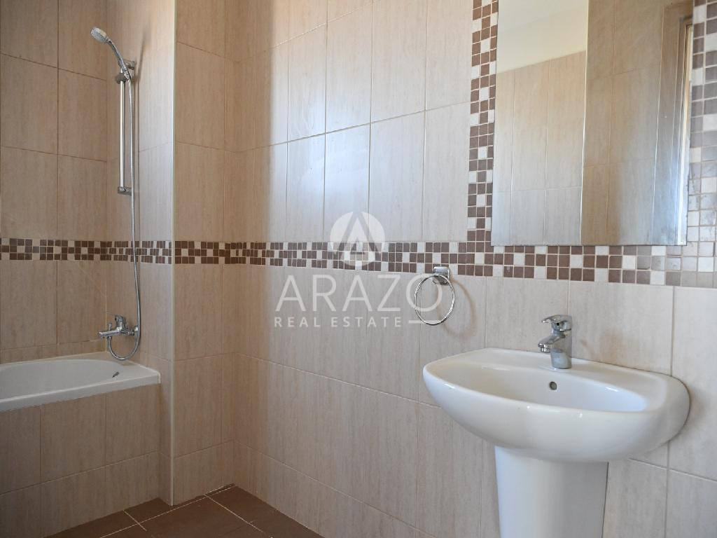 The apartment was constructed in 2007 and is located on the 1st floor which is located on the northern part of the complex. It consists of a kitchen/living room/dining room as an open space, one bedroom, bathroom with toilet, covered and uncovered veranda. Furthermore, it has an uncovered parking space on the ground floor.